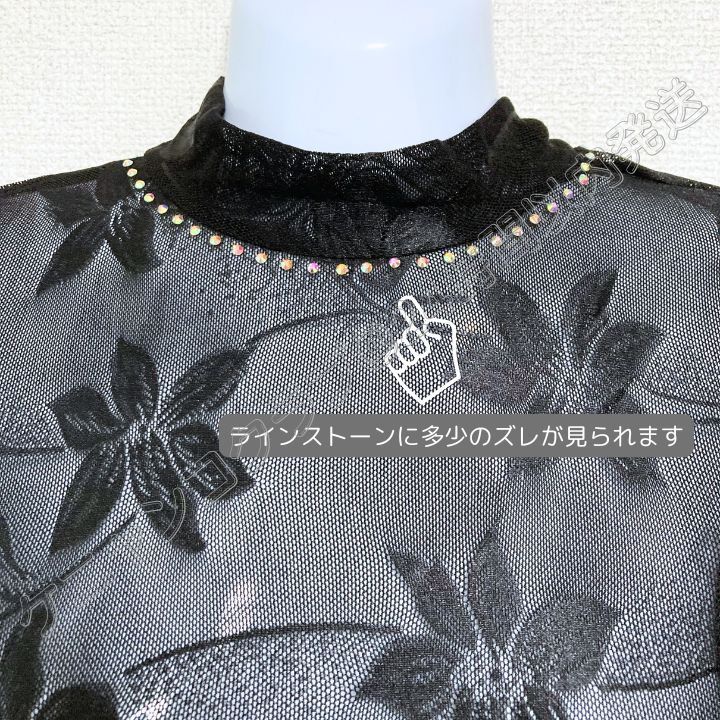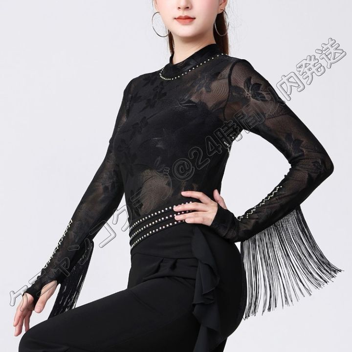 社交ダンス トップスレオタード フラワーデザイン フリンジ袖 練習着 Mサイズ