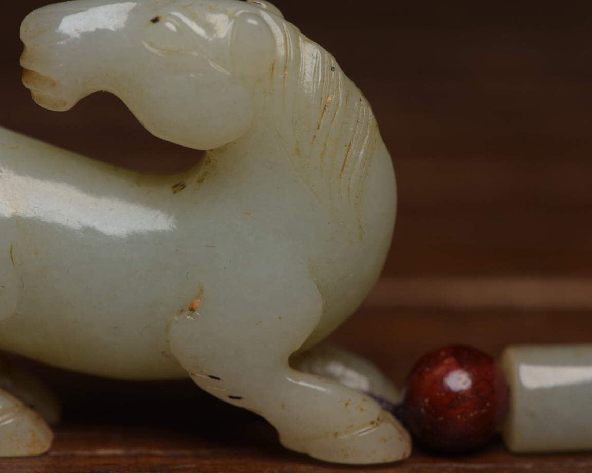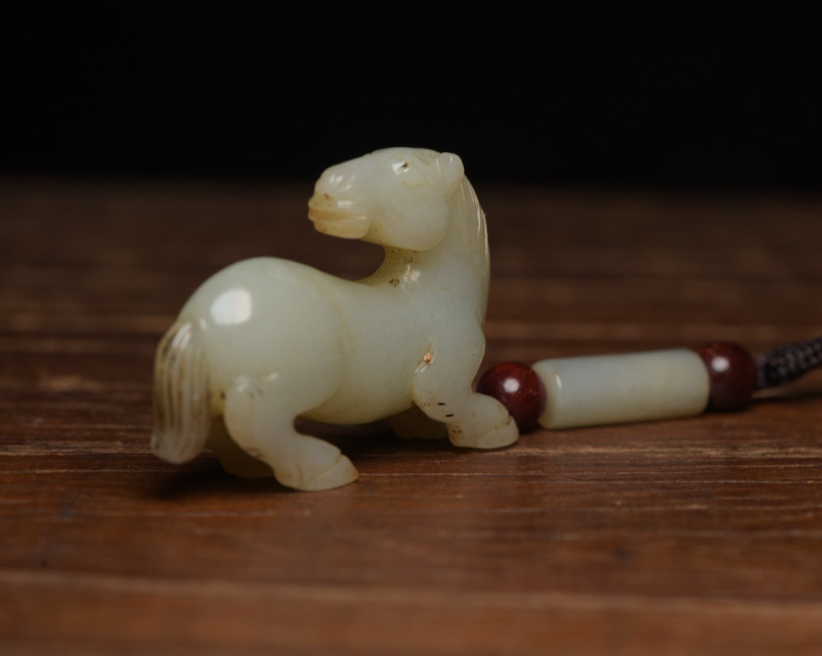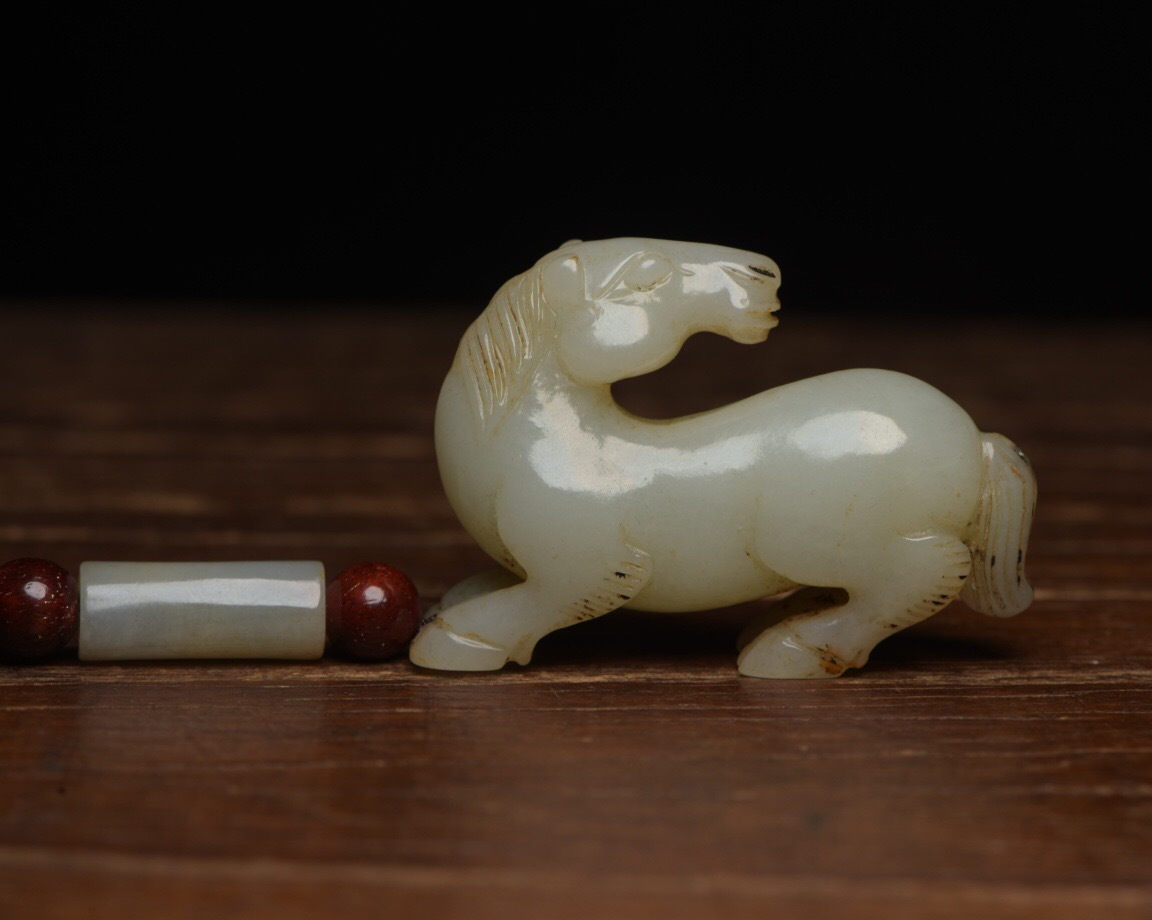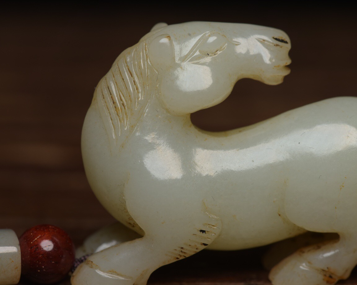 【超珍館蔵】和田玉製 細密彫 玉馬 置物 古賞物 古美術品 稀少珍蔵品