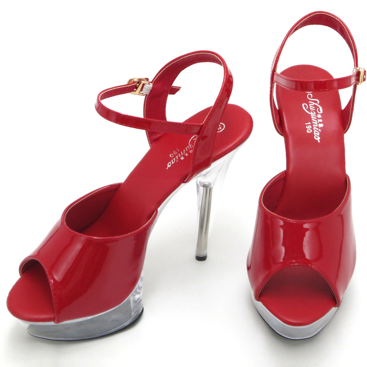 新品 大きいサイズ サンダル レッド 26cm 132200-42 クリアーソール 前厚底ストーム ハイヒール