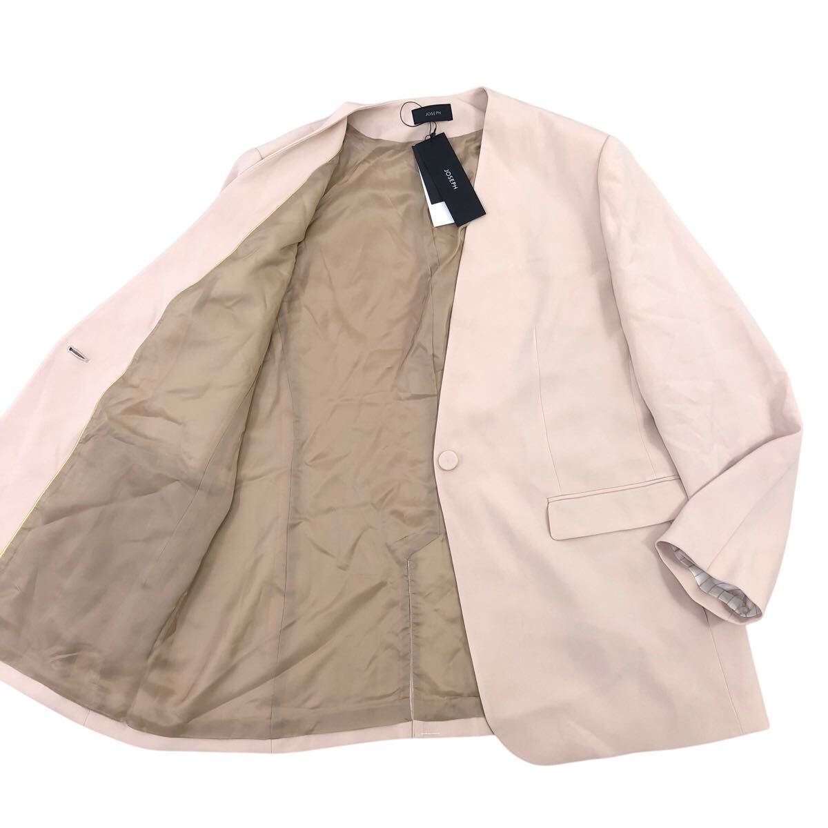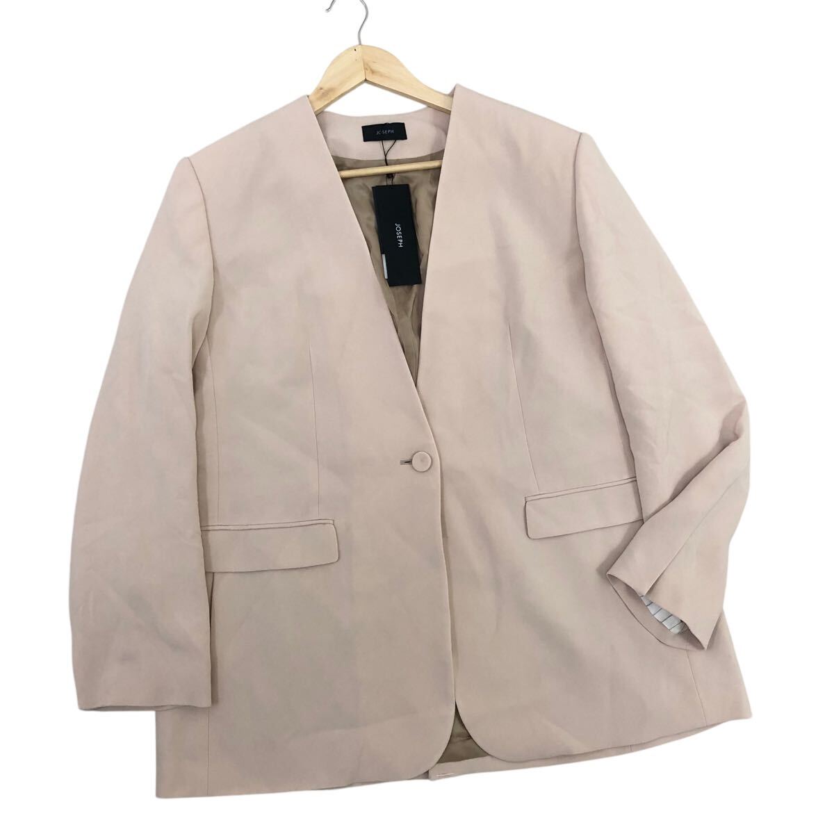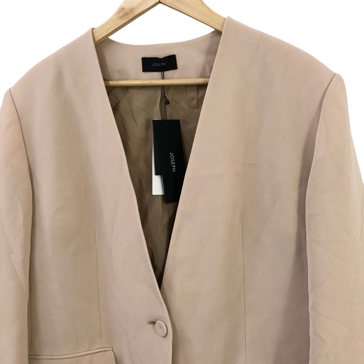 m614-10 未使用品 大きいサイズ JOSEPH ジョセフ 61000円 ノーカラー ジャケット 上着 羽織り トップス ベージュ レディース 44 日本製
