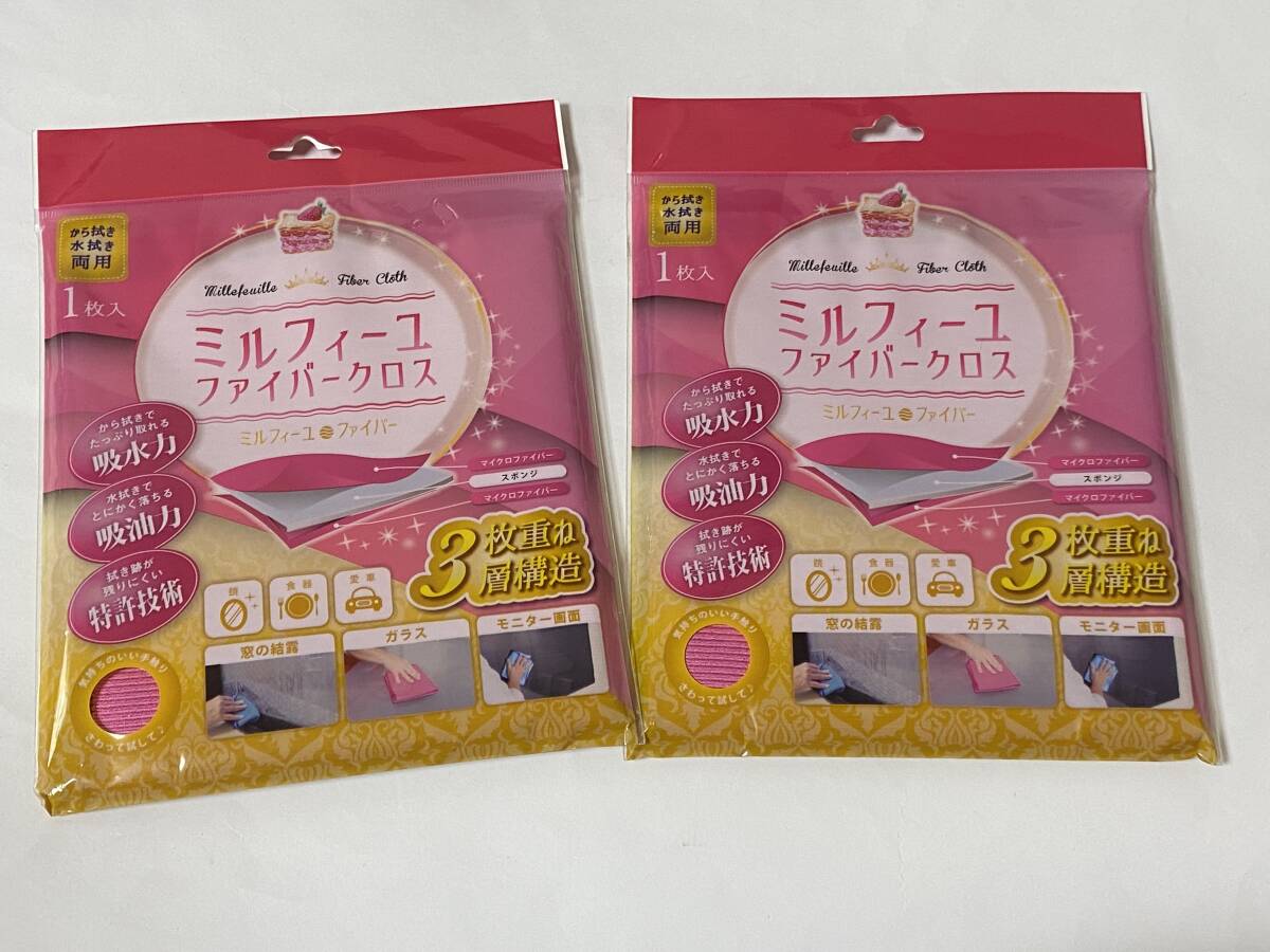から拭き 水拭き 両用 ミルフィーユファイバークロス サイズ 約320×360mm 1枚入り 2点 (同色) 展示未使用品