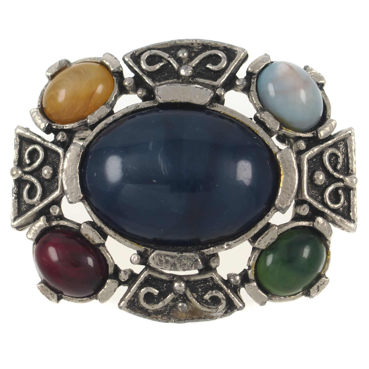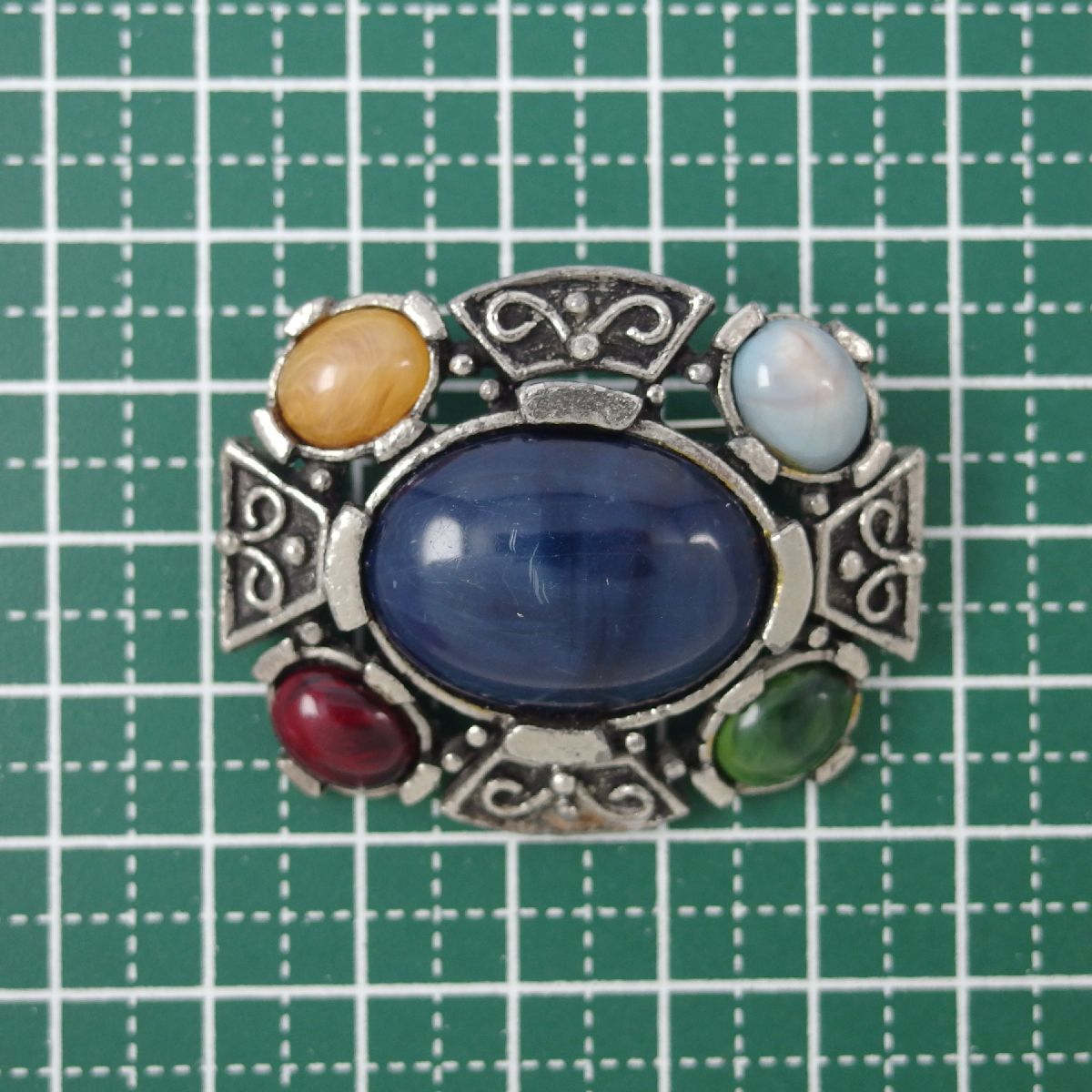 UK3423◆ ケルト十字 クロスモチーフ 5種のマルチカラーストーン 色石 ◆ ヴィンテージブローチ ◆ イギリス 英国