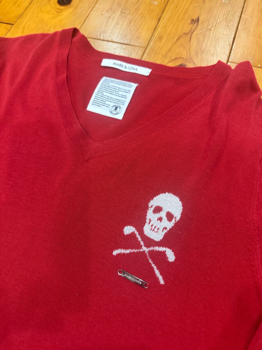 MARK&LONA マークアンドロナ ニット セーター 長袖 メンズ ゴルフウェア レッド 赤 Lサイズです。