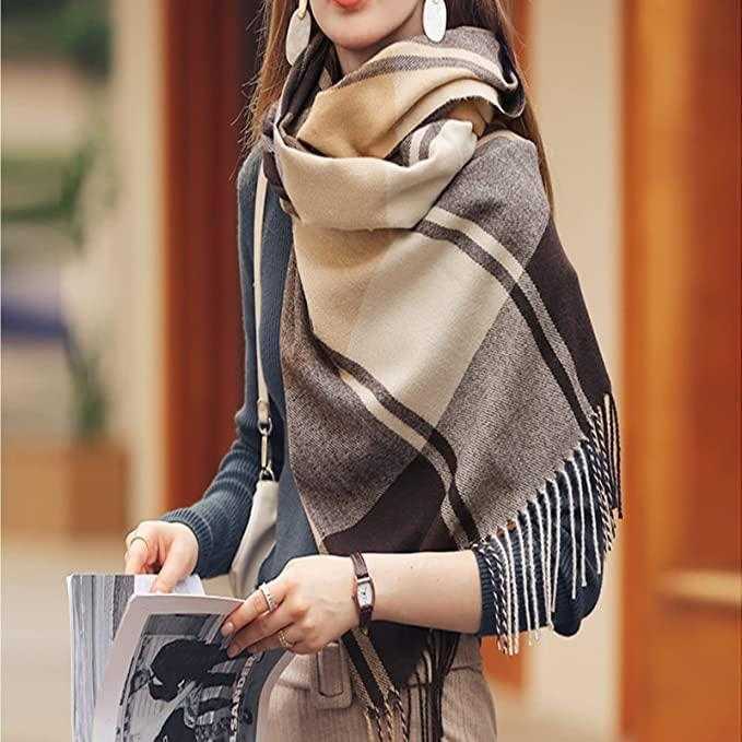 【滑らかな手触り】上質なフェイクカシミヤ生地とポリエステル素材を使用し、織りで仕上げたストールです,人気のチェック柄が特徴です。カシミヤタッチで肌触りに優しいです,ふんわりとして暖かいです,お客様により快適な装着体験を提供する。