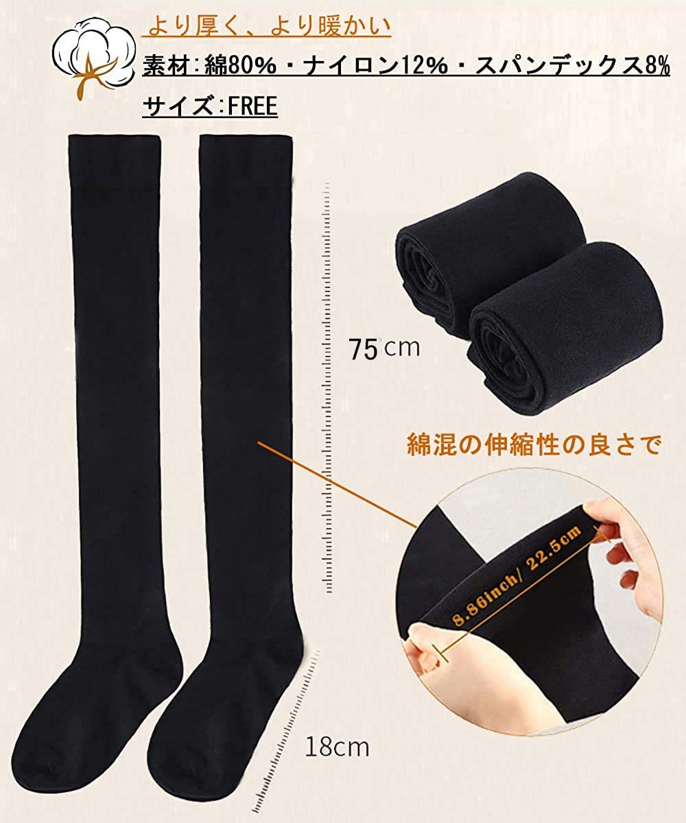 ●サイズ: 22cm- 25cm 。伸縮あり、身長150cm-185cmの方にオススメどんなジャンルの服にも合うからチャレンジしやすい! 身長が185 cmに達しても、このソックスは膝を超えて膝を暖かくします。