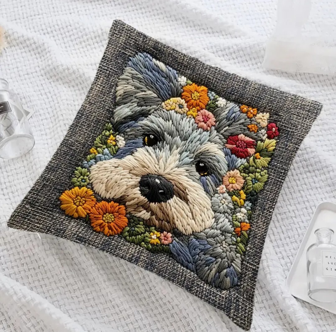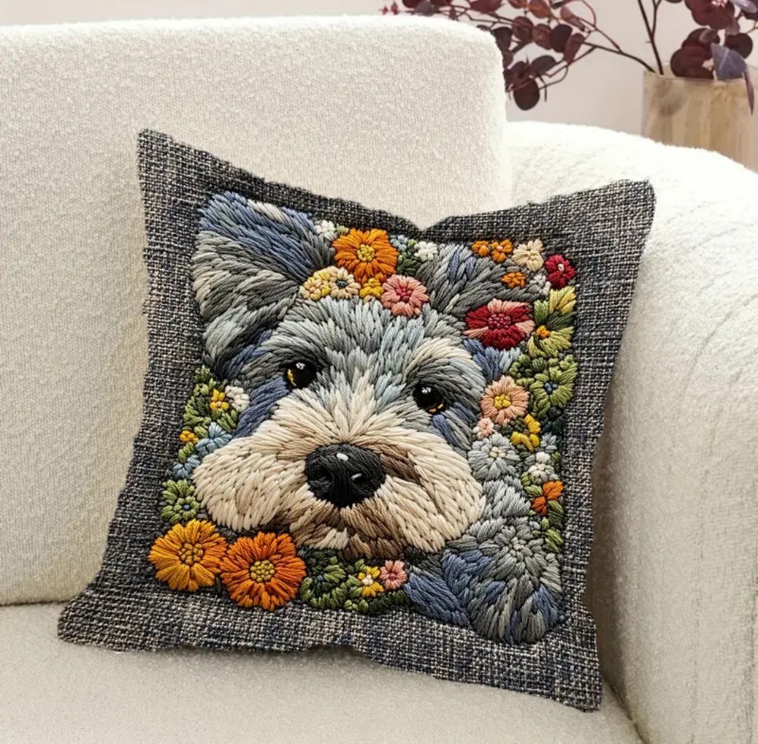 こちらは、 新品未使用 シュナウザー お花 刺繍風 ポリエステル クッションカバー インテリア になります♪