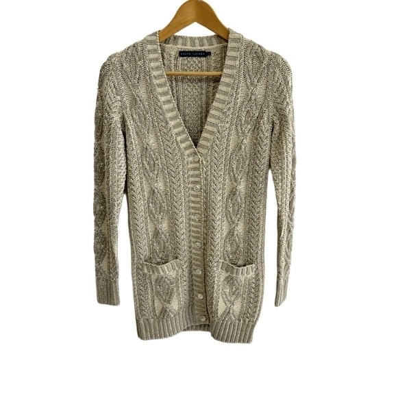 ラルフローレン RalphLauren カーディガン サイズS - ベージュ×シルバー レディース 長袖/ラメ 美品 トップス