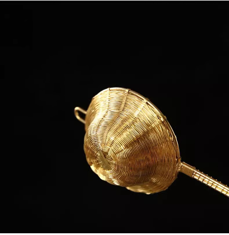 この手編みの銅製茶こしは、職人技が光る逸品。細かい編み目が茶葉やコーヒーの粉をしっかりキャッチし、まろやかな味わいを引き出します。銅の優れた抗菌性と耐久性で、長く清潔に使えます。