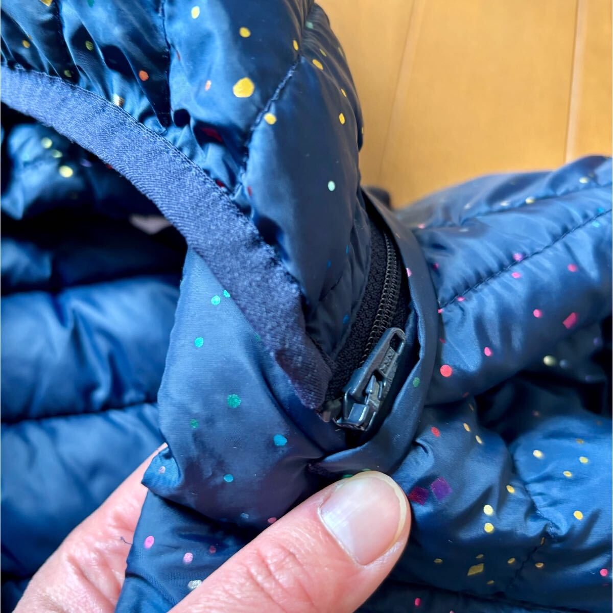 フードは取り外し可能、中綿ポリエステルなのでお手入れもしやすいです。軽量で、持ち運びもしやすく、インナーダウンとしても使えると思います。