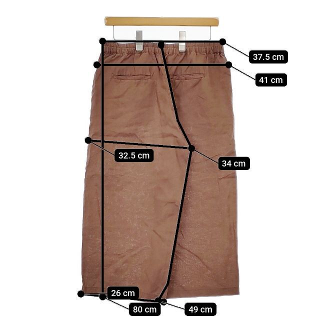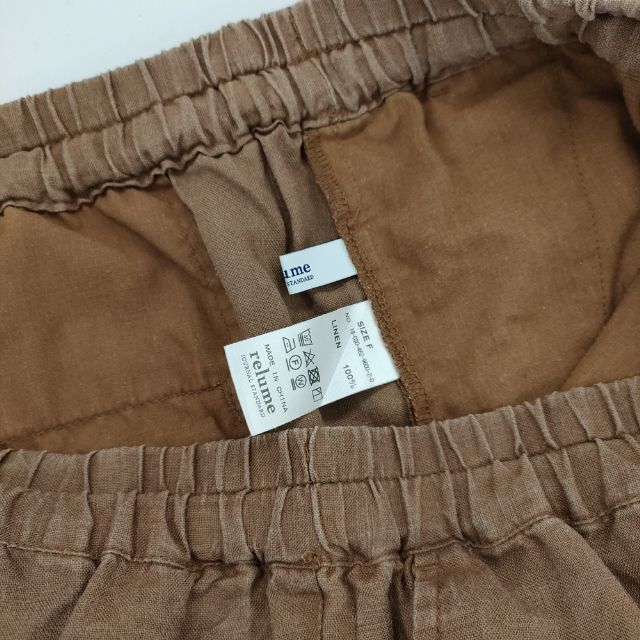 | 仕様 | フロント:なし ポケット:あり 透け感:ややあり 裾:シングルステッチ ウエスト調整:ゴム(紐あり) 裏地:なし |