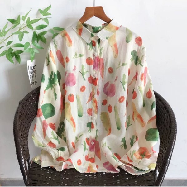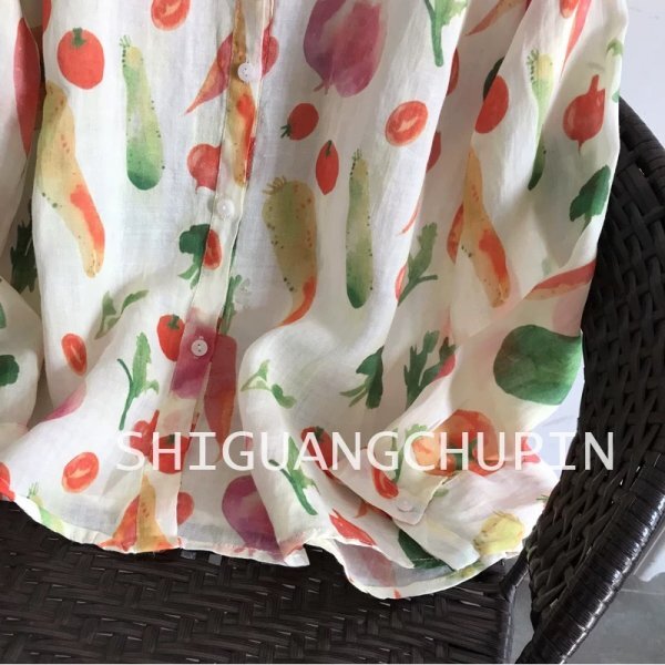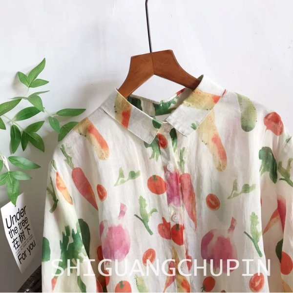 sg プリント花柄 フリーサイズ ワイシャツ チュニック トップス 麻100% 大人可愛 ナチュラル 花柄32