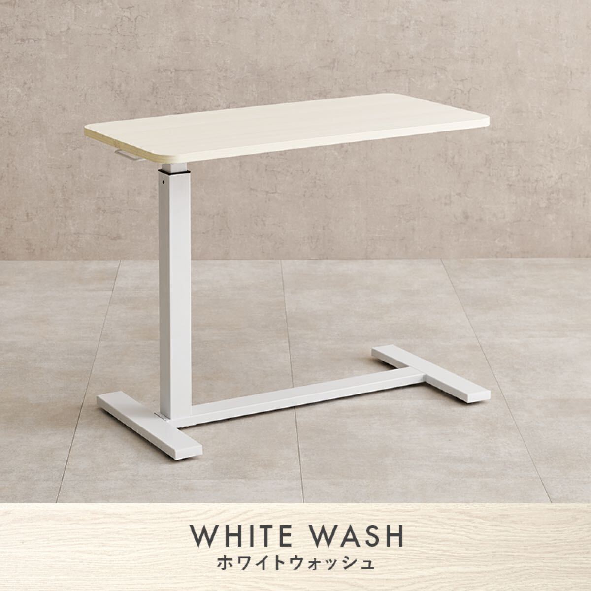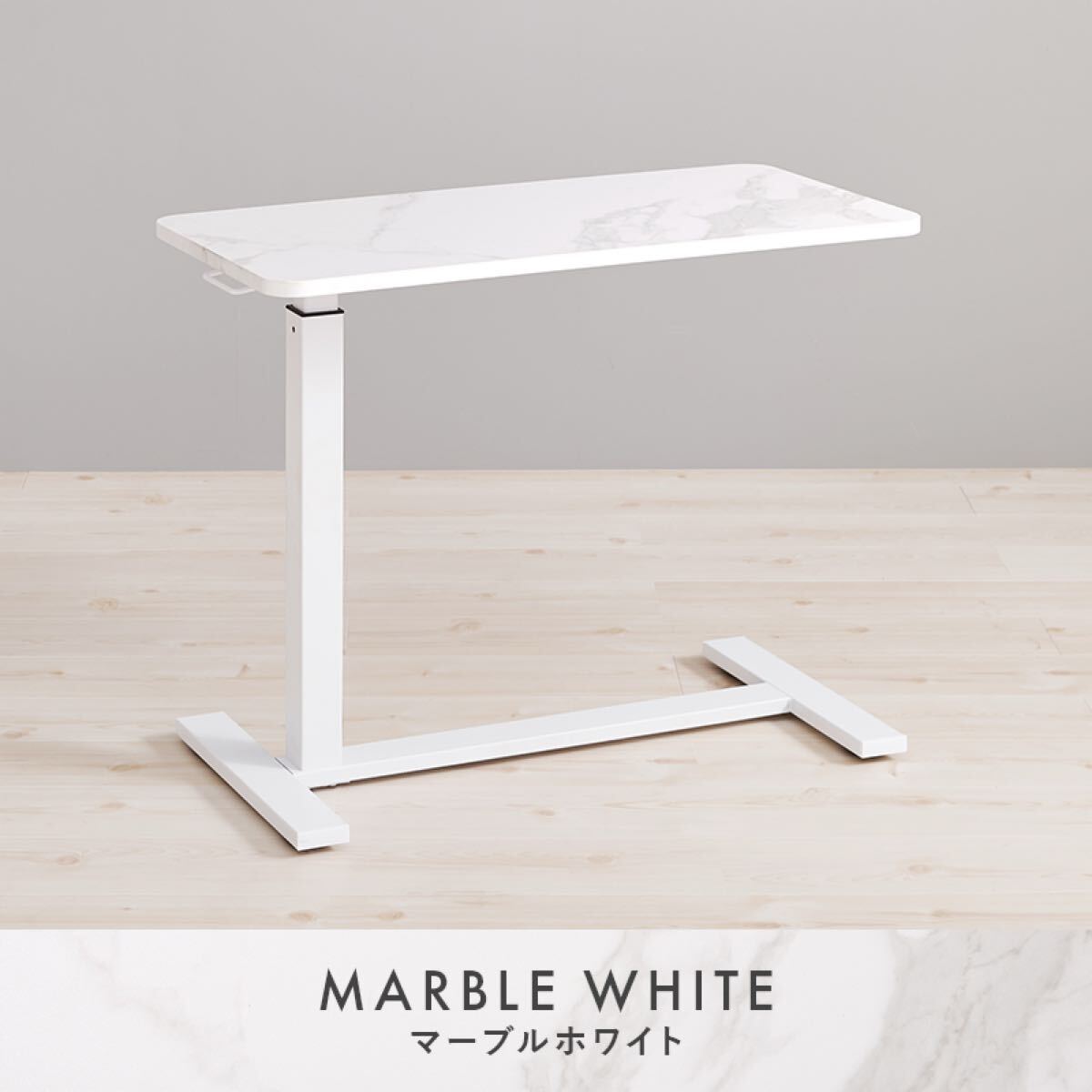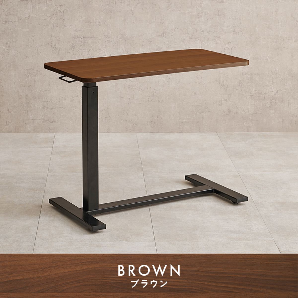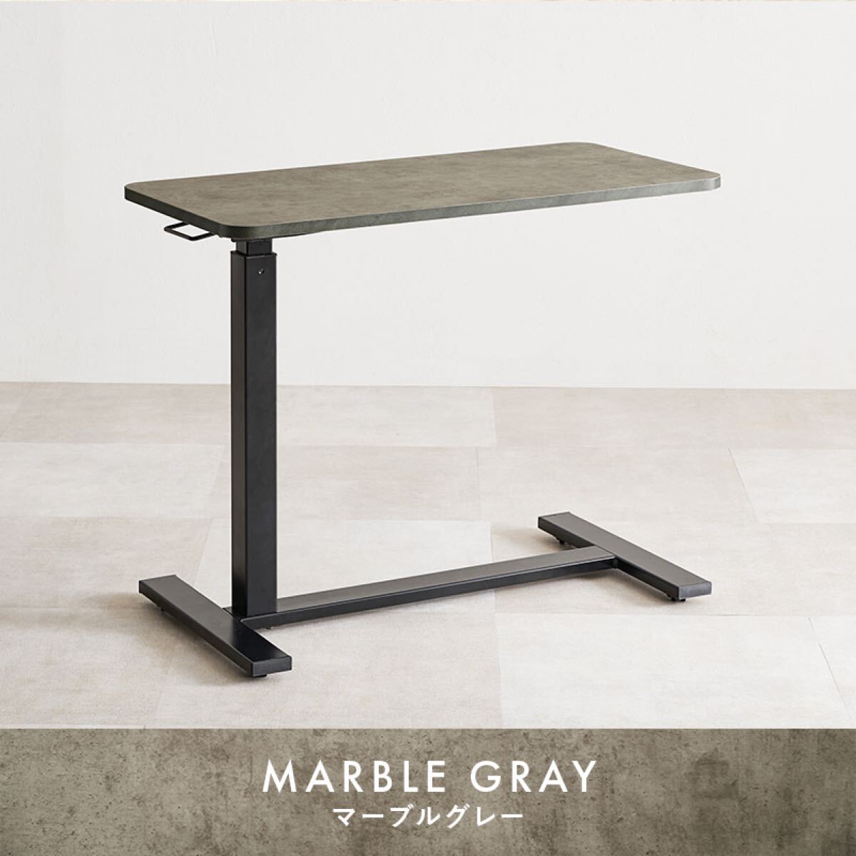ガス圧式で無段階に高さ調節ができる昇降テーブル。