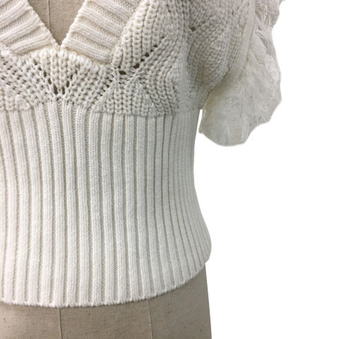 センスオブプレイス バイ アーバンリサーチ ベスト ニット プルオーバー Vネック 透かし編み フリンジ One 白 ホワイト レディース