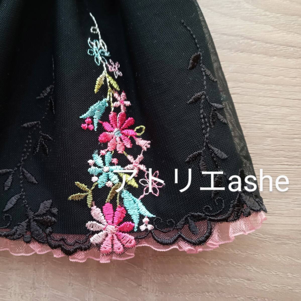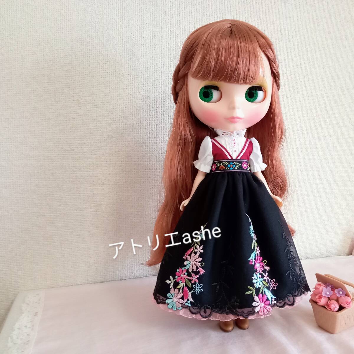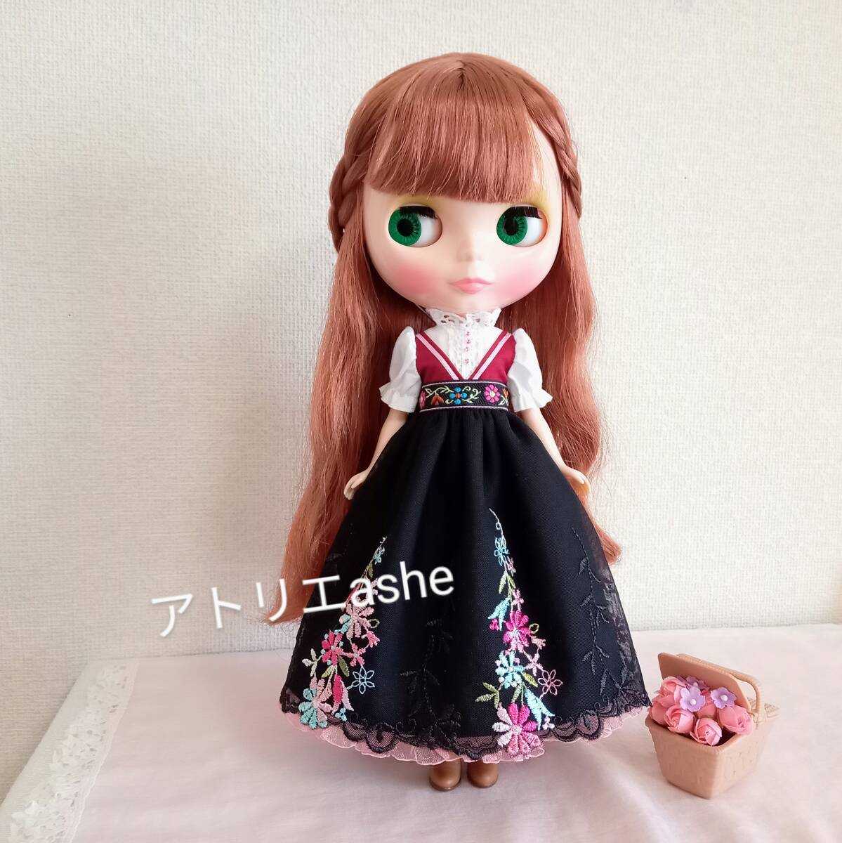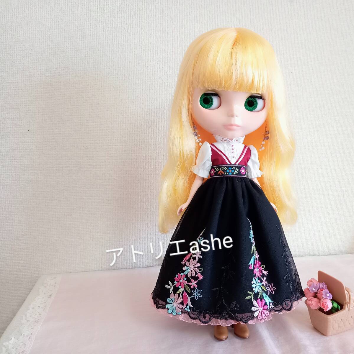 送料無料! ハンドメイド ネオブライス・リカちゃんの服 「民族衣装風 チュールレースドレス 黒」ブライス 服 ワンピース アウトフィット