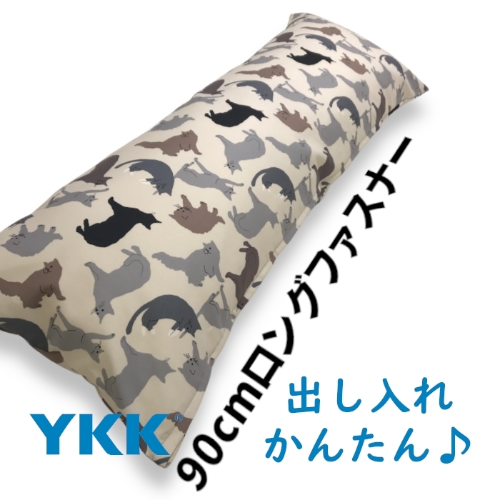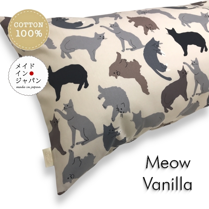 Dサイズ 枕カバー ミャウ バニラ グレー ネコ猫柄 ピローケース 43×120cm 綿100%