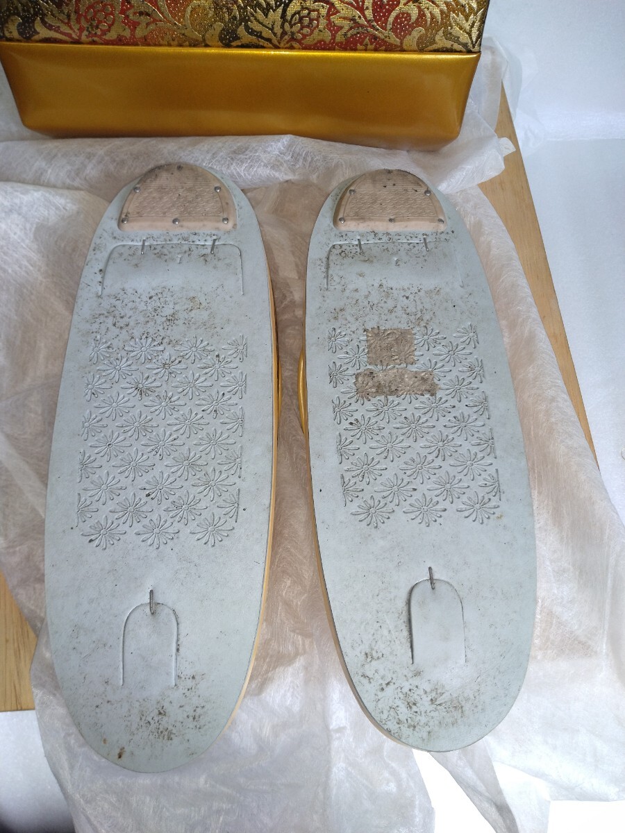 商品説明 | ご覧いただきありがとうございます。 【中古良品】 着物 和装 草履 和装バッグ セット ゴールド 本革製品 木箱となります。 使用頻度は極少の個人保管品物となり、長期保管品物ですので経年の傷みはあります。 全ての汚れやキズを写真に掲載することが難しく、捉え方に個人差もございます。 完璧を求める方、神経質な方、古い製品や中古品物等にご理解が無い方は入札をご遠慮ください。 現状渡しとさせていただきますので、ノークレーム・ノーリターンでお願いします。 【 発送方法・送 料 】 ヤマト宅急便元払いになります。 では、よろしくお願いします。 | |