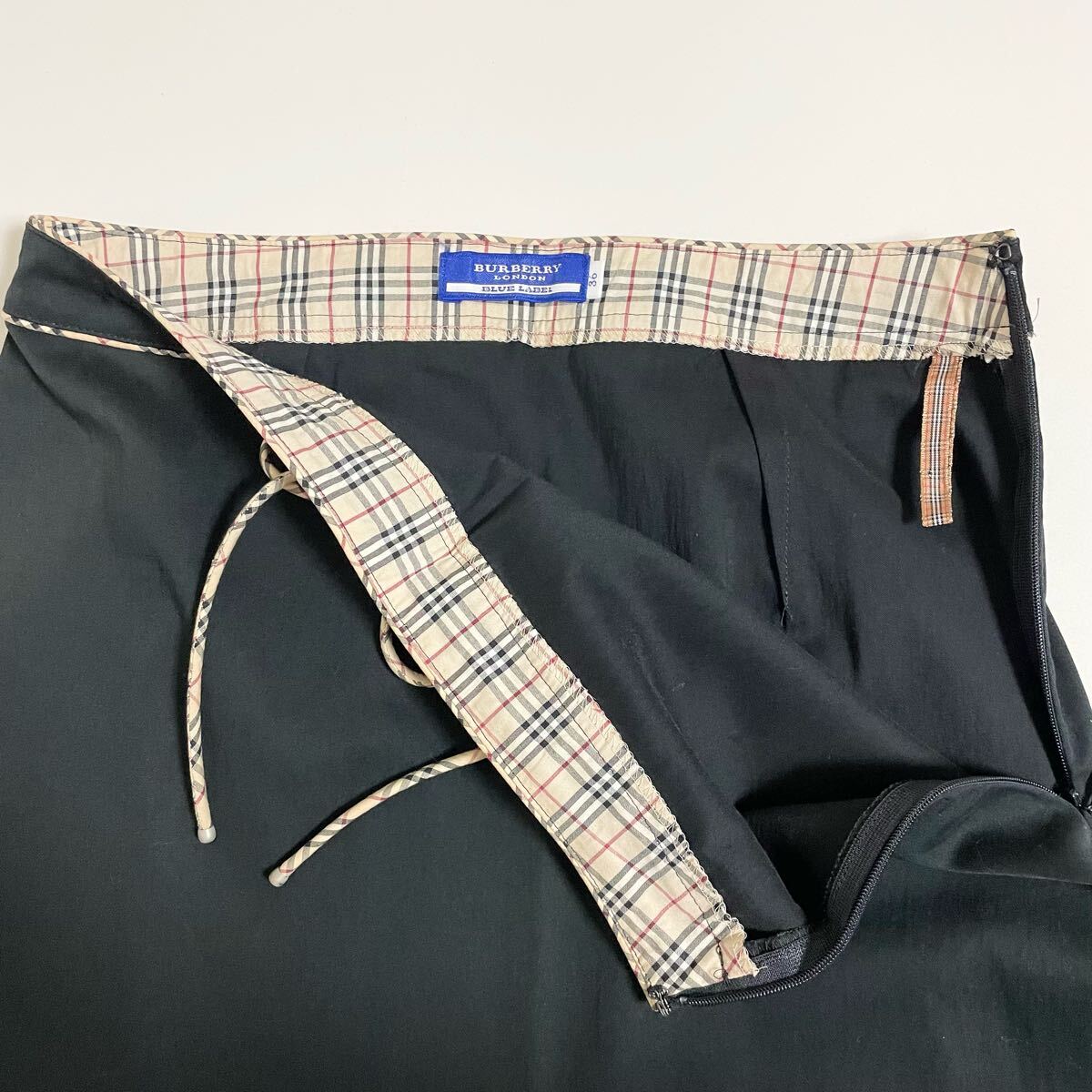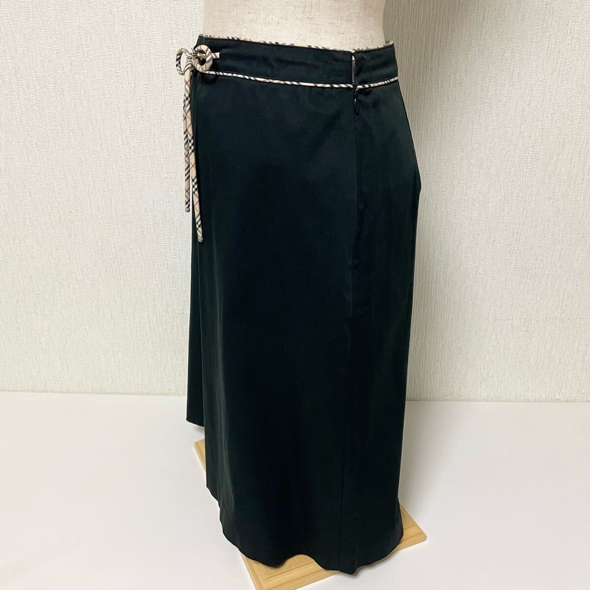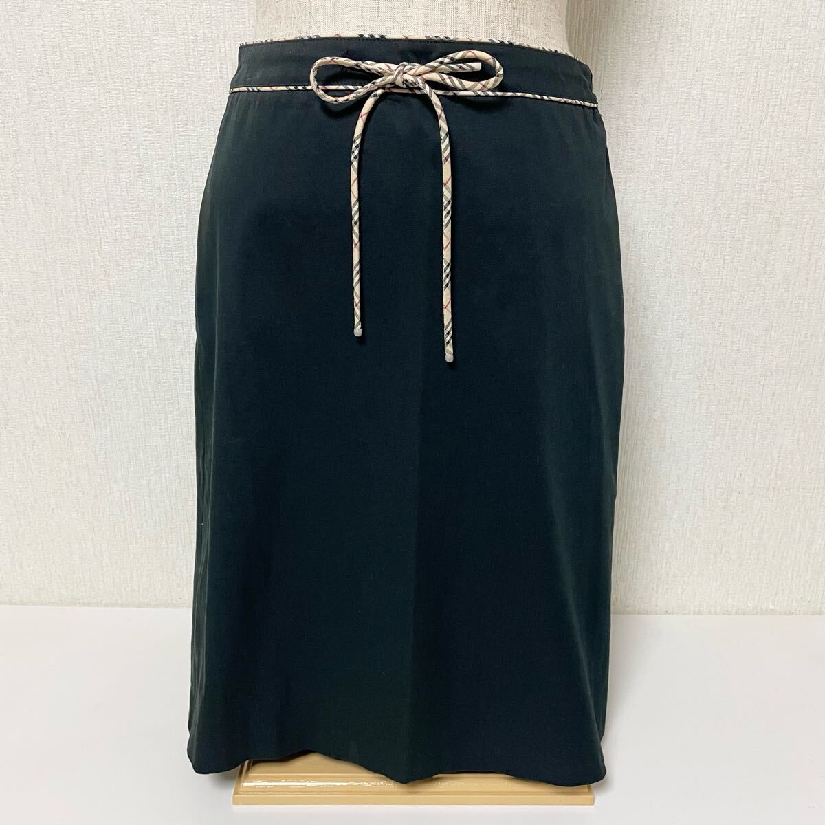 即決☆BURBERRY バーバリー ブルーレーベル リボン ノバチェック 膝丈 スカート 36 美品 S ブラック