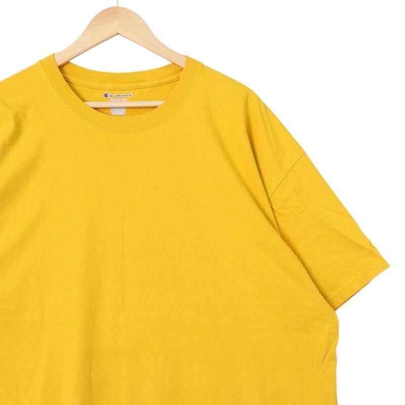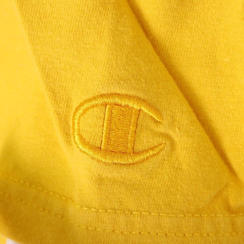 Champion チャンピオン クルーネック半袖Tシャツ メンズUS-3XL 無地 山吹色 袖刺繍ロゴ hsc-0294n