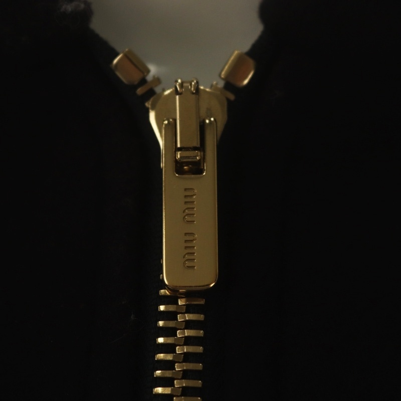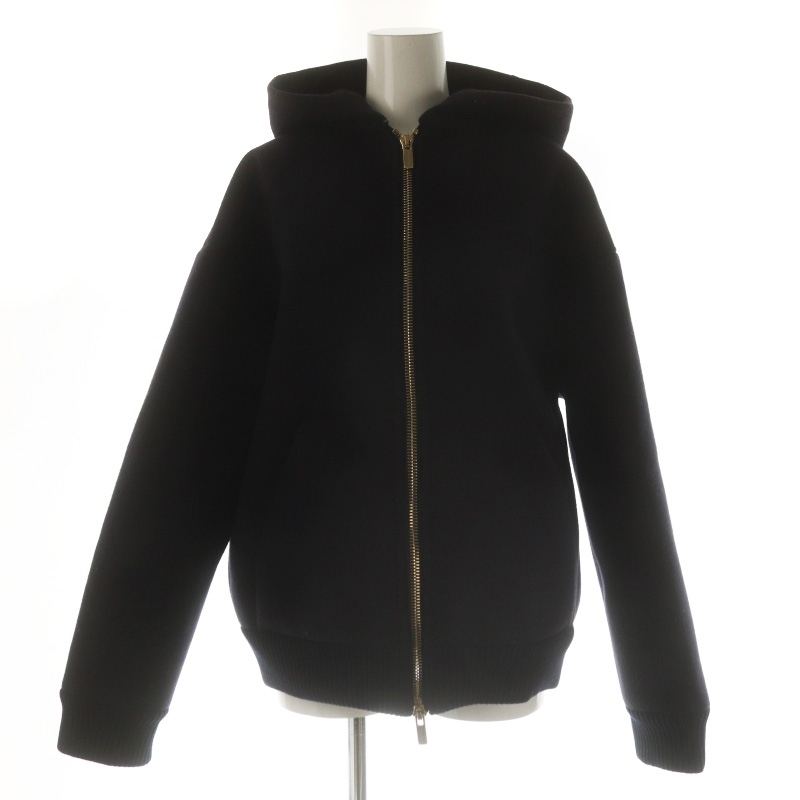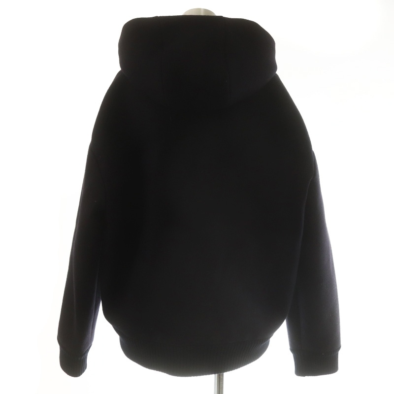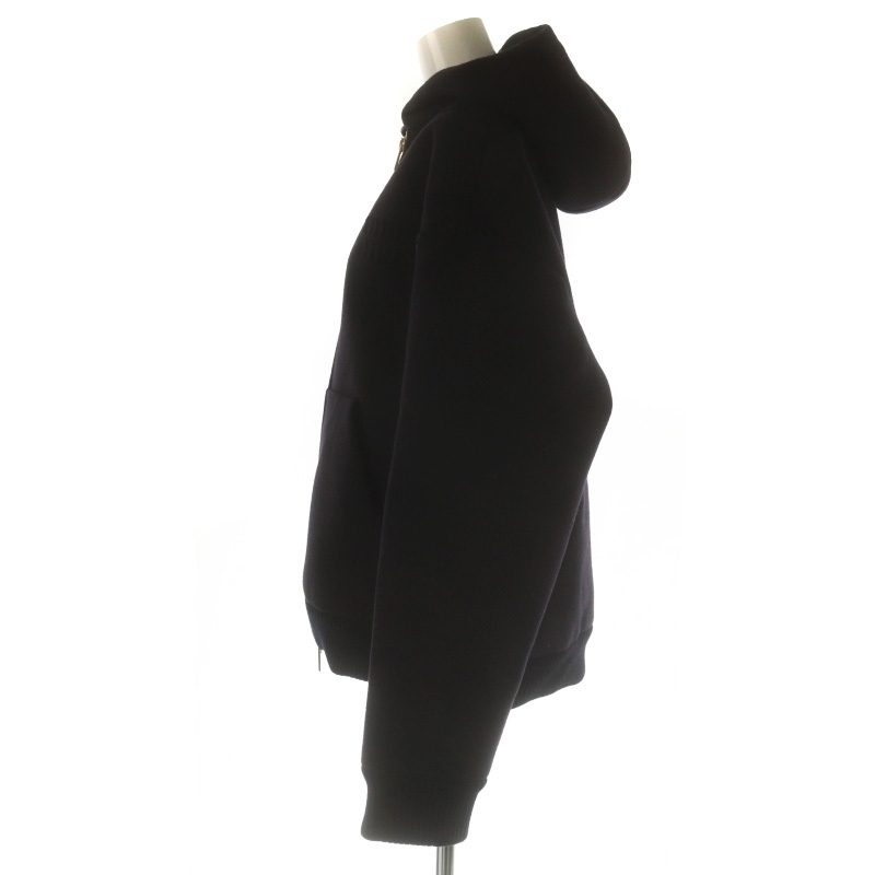 ミュウミュウ miumiu 23AW ロゴワッペン フーディージャケット ブルゾン ジップアップ ウール 36 濃紺 ダークネイビー