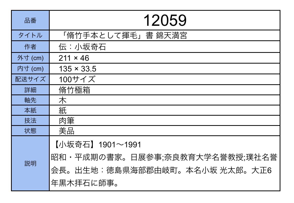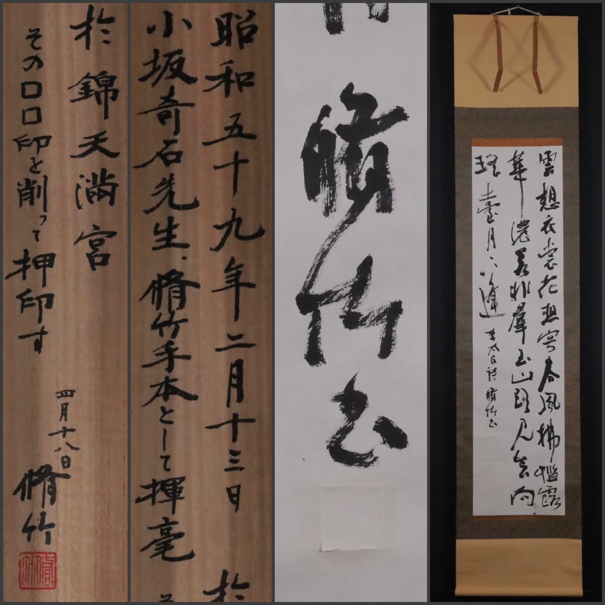 【模写】吉】12059 伝:小坂奇石 「脩竹手本として揮毛」書 錦天満宮 脩竹極箱 書家 徳島県の人 千葉県の人 茶掛け 茶道具 掛軸 掛け軸