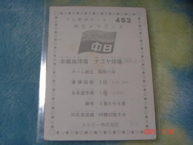 カルビー75年 プロ野球カード NO.452 (中日ドラゴンズ)