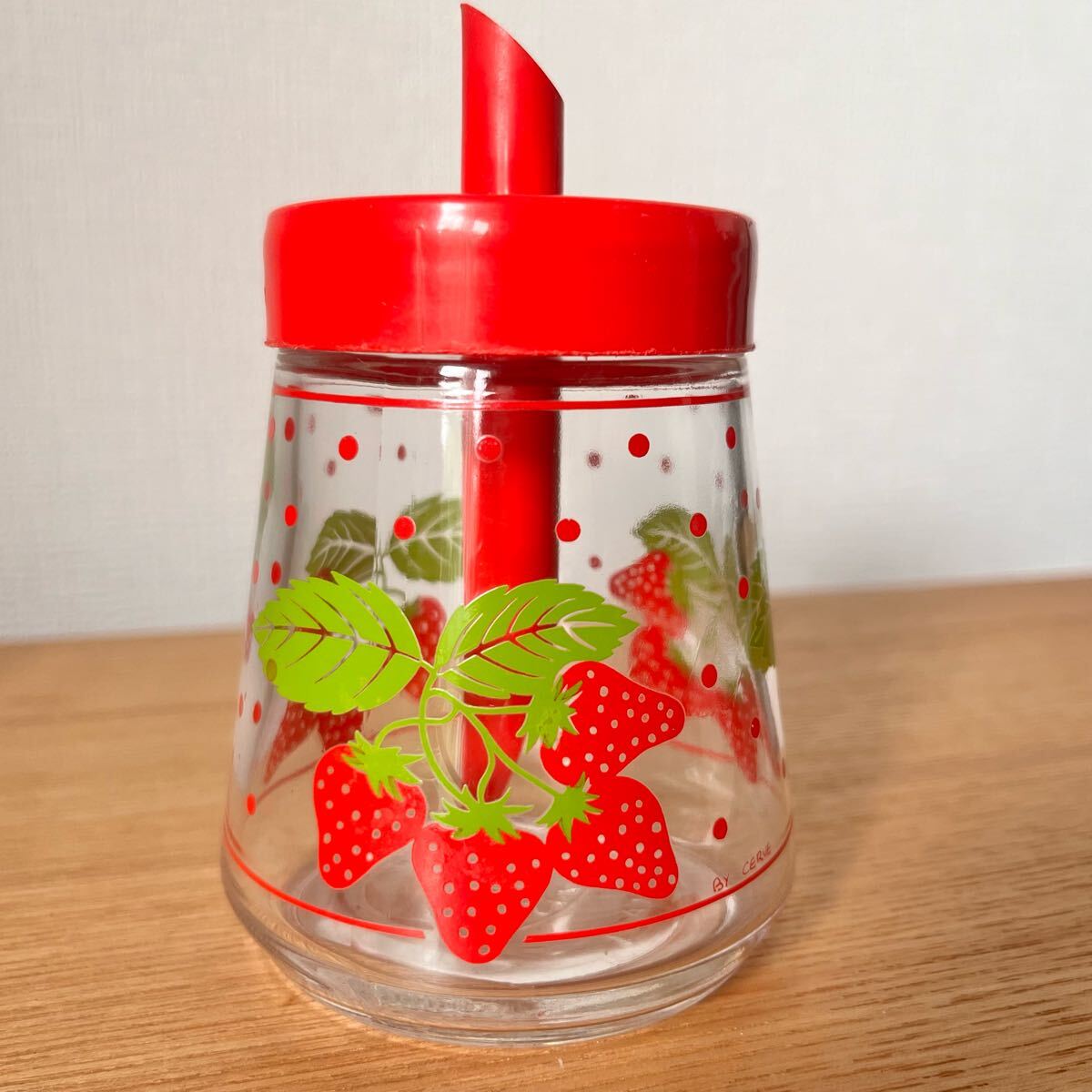 レトロ可愛いストロベリー柄で、スイマーやアデリア等の食器ととてもよく合うと思います。
