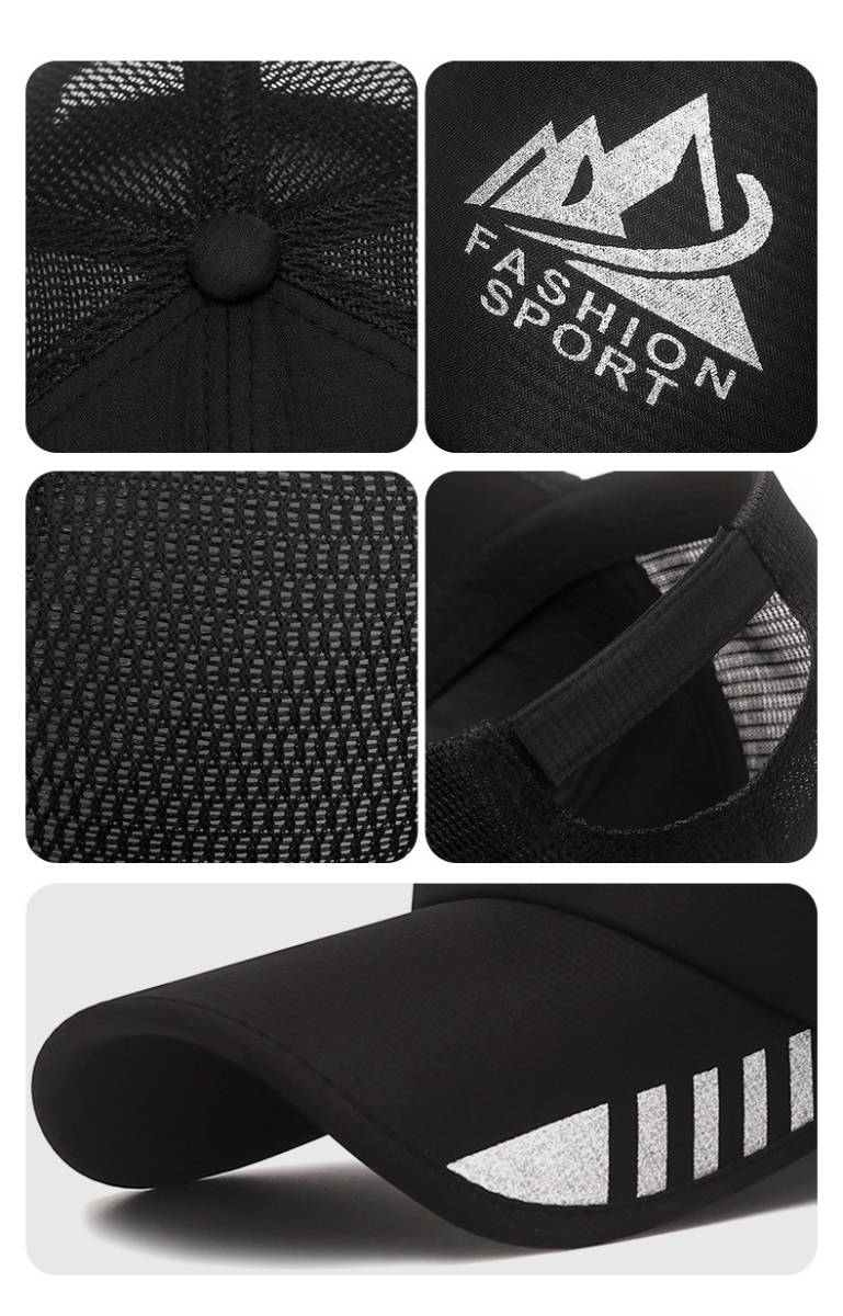 キャップメンズ 帽子 メッシュ 夏 涼しい UVカット99%紫外線対策 日焼け防止 熱中症対策 野球帽-黒