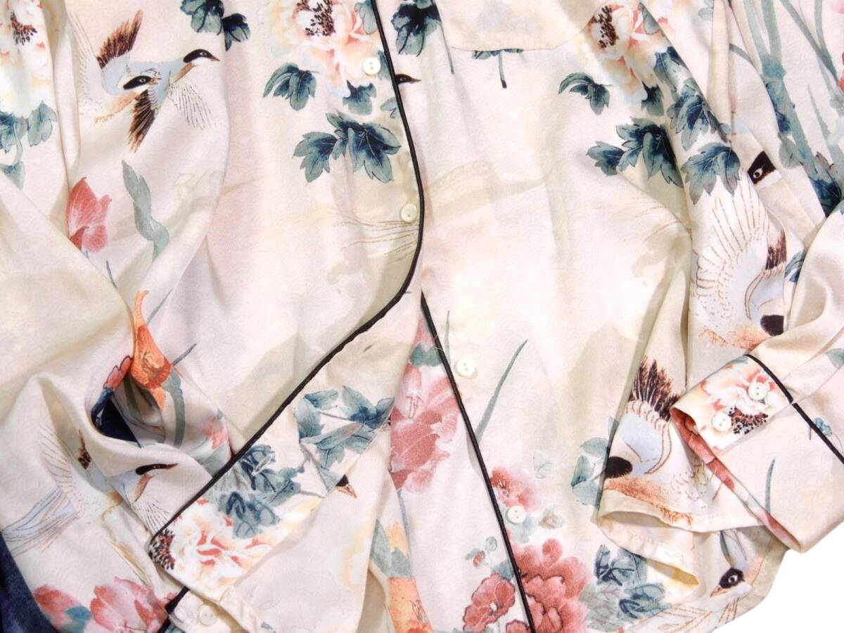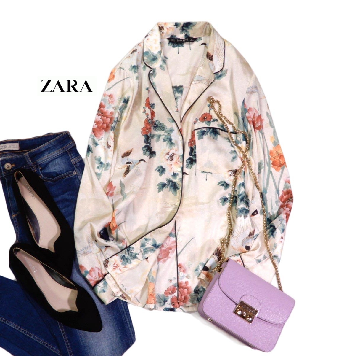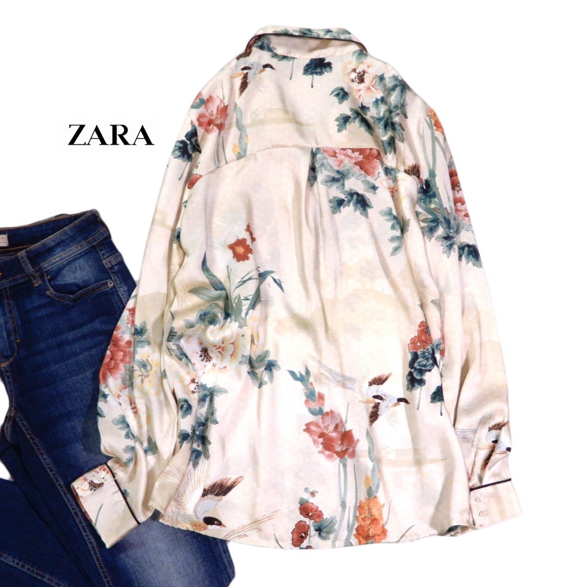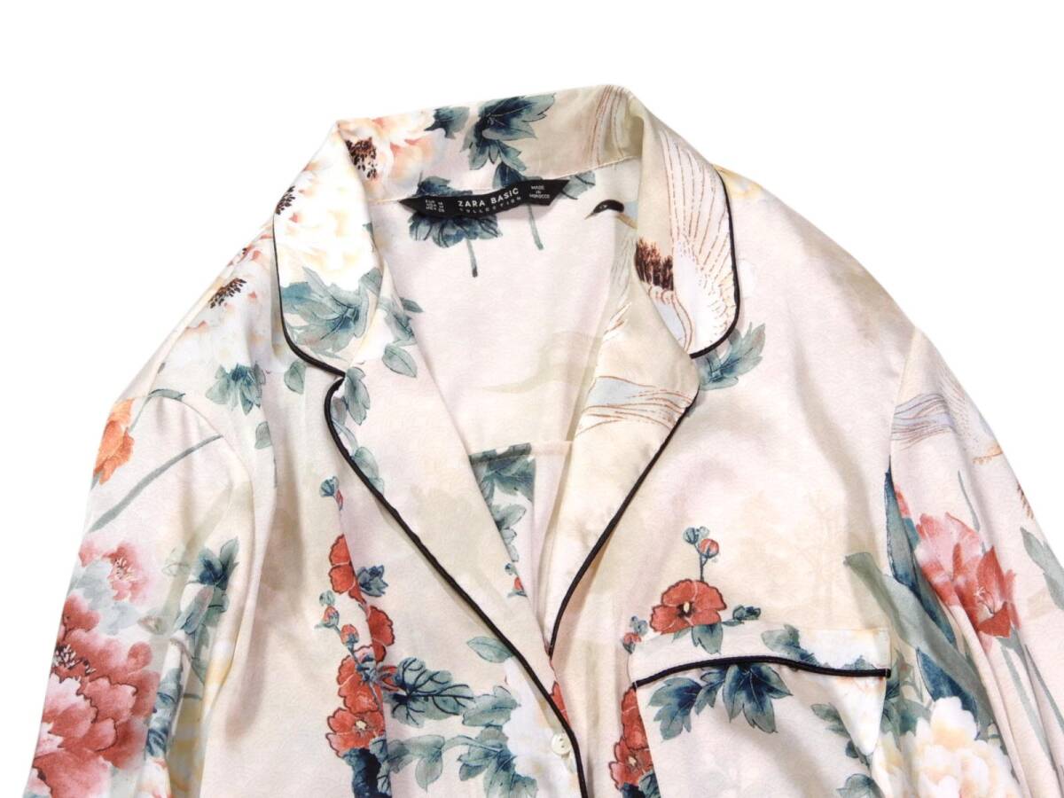 ザラベーシック ZARA BASIC 可愛い☆微光沢 オリエンタルプリント パジャマ シャツ M