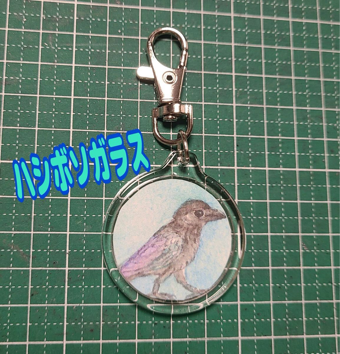 市販のフォトキーホルダーに手描きの水彩イラストを入れて作ったハンドメイド品です。