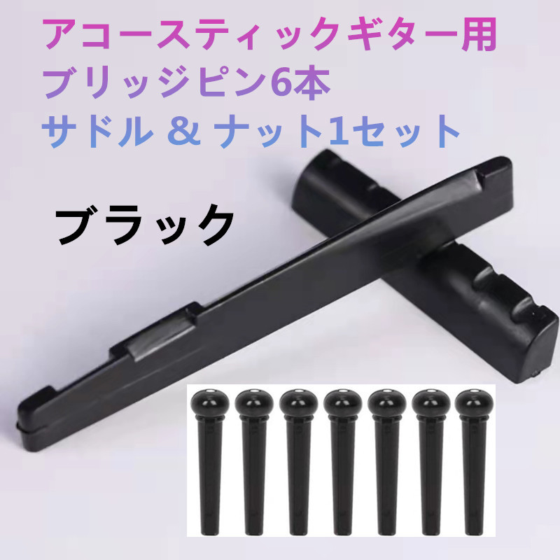 日本郵便  アコースティックギター用ブリッジピン サドル & ナットセット ブラック