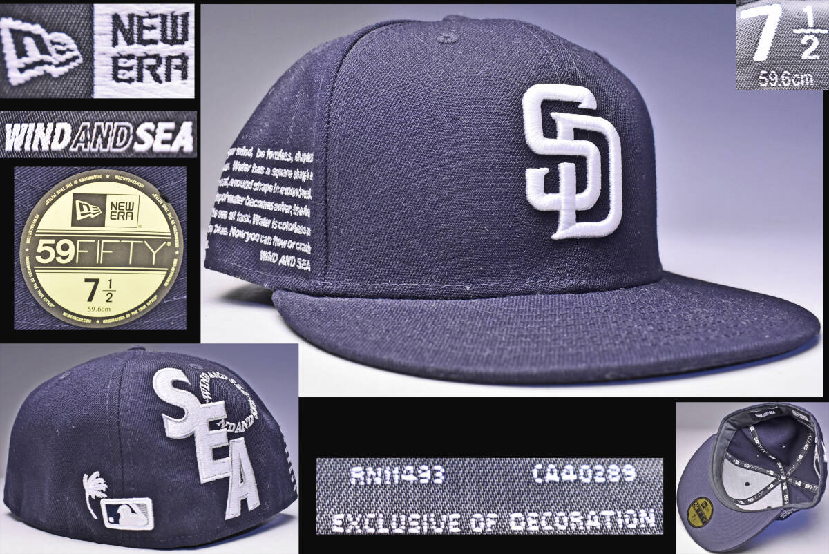 NEW ERA ★ ニューエラ ★ MLB 大リーグ パドレス ★ WIND ADND SEA ★ 帽子 ★ キャップ ★ 野球帽 ★ 7 1/2 ★ ネイビー ★ 中古品 ★