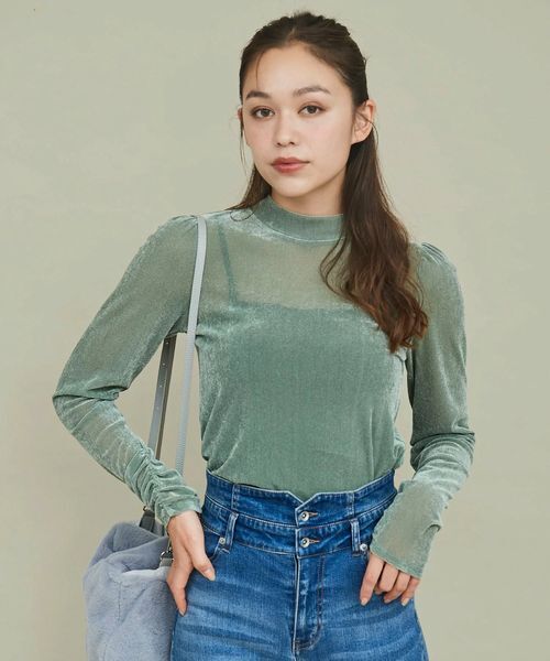 31 Sons de mode (トランテアン ソン ドゥ モード)ベロアチュールトップスです。 透け感のあるベロア素材がお洒落なお品です。 商品詳細… 女性らしさが引き立つほんのり透け感がありながらベルッベットのような起毛感のある絶妙な素材が、着るだけでトレンドライクなルックスの1枚。 着心地も◎なストレッチ性素材で、上に羽織ったり重ね着もしやすいすっきりとしたデザイン。 袖口にシャーリングを入れ、着るだけで袖口がクシュクシュっとなる今っぽい見え方に仕上げました。 ご質問はお気軽にどうぞ。 ◆カラー: グリーン ◆サイズ:フリー (ブランドによりサイズ感が異なりますので、実寸を参考になさってください。) ◆実寸(約):身幅40.0cm、肩幅31.0cm、総丈58.0cm、袖丈68.0cm、裾幅 40.0cm ◆素材:ポリエステル88% ポリウレタン12% ◆新品・未使用 ◆定価6,930円(本体6,300円+消費税) |