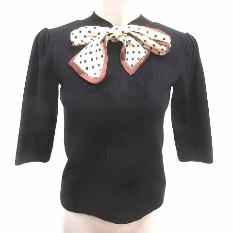 アナトリエ ANATELIER ニット カットソー ボウタイ 五分袖 38 M 黒 ブラック /YK レディース