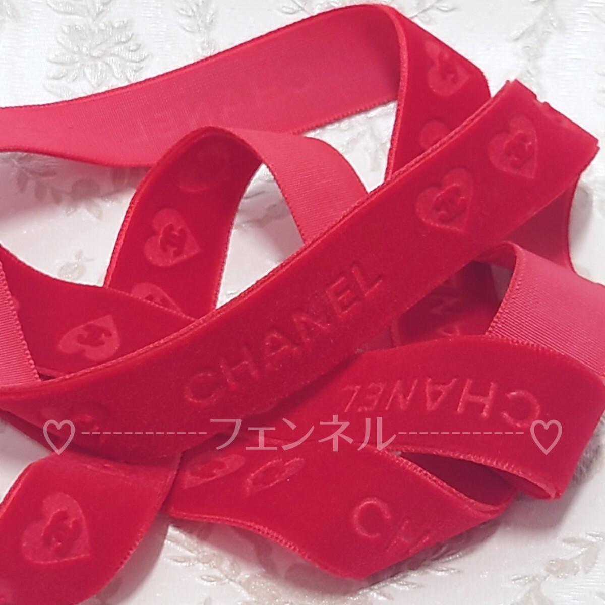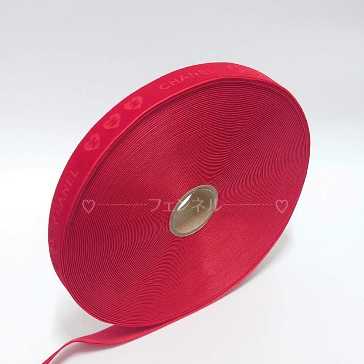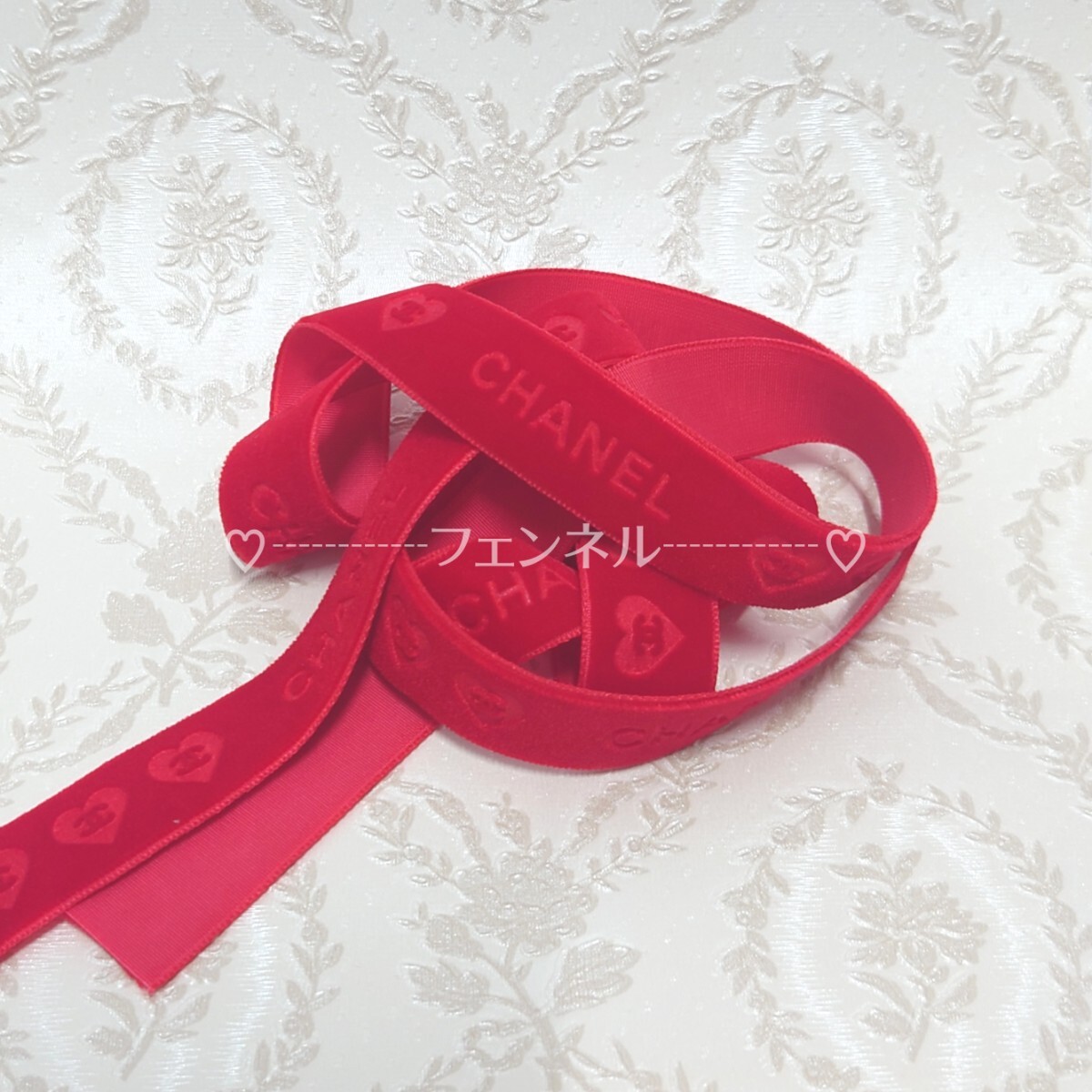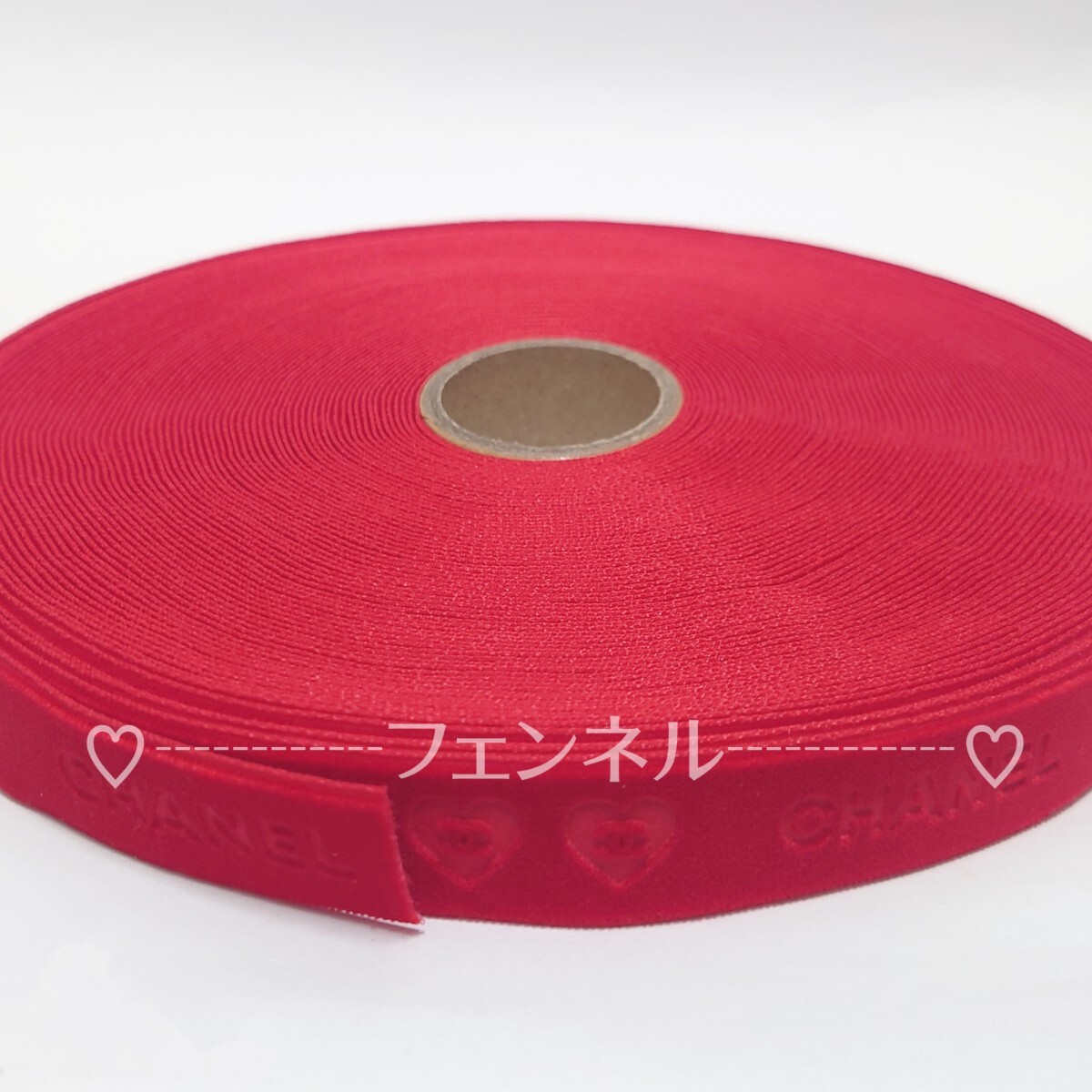 【ベロア赤×10m】入手困難 期間限定 CHANEL ロールからカット シャネル ギフト用 リボン ハート CCマーク ラッピング プレゼント 梱包