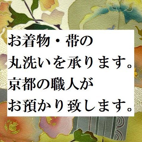 ◆◆◆着物や帯の丸洗い仕上げを承ります◆◆◆ 私共は、京都にて、室町の問屋を始め、地方の呉服店様や着付教室の方々などと幅広くお取り引きをさせて頂いて 創業80年になります和装専門のお手入れ処です。 着物や帯などのお手入れを気軽にご依頼して頂けるよう、 帯・長襦袢・コート類・紬・小紋・色無地・付下げ・訪問着・振袖・黒留袖の 【丸洗い仕上げ】を、オークション特別価格【落札金額】にて承ります。 ◆◆◆期間限定企画◆◆◆ また期間限定企画といたしまして、 ご着用時一式分【着物(1点)+長襦袢(1点)+帯(1点)の組み合わせの計3点】の丸洗い仕上げをご希望の場合は、 【丸洗いセット価格:7800円(各2600円×3点)税込】にて承ります。 ご希望の方は、数量1で落札頂きまして取引ナビにて【丸洗いセット希望】とご記入の上、 着物1点・長襦袢1点・帯1点の計3点をお送りください。 ※上記の丸洗いセット価格は、着物(1点)と長襦袢(1点)と帯(1点)の組み合わせに限ります。 ◆◆◆しみ抜きセット特別価格◆◆◆ しみ抜きをご希望の場合は【丸洗い仕上げとしみ抜き】を致しまして、 【しみ抜きセット価格:5990円〜7990円】にて承りますので、 ご希望の場合は、取引ナビにて【しみ抜きセット希望】とご指示ください。 ※上記のしみ抜きセット価格は、通常のご着用において付着したシミ(数か所の軽度のシミ)を対象としています。 経年により黄色や茶色に変色したシミ、色やけや色褪せ、多量の水溶性のシミなどは含まれておりませんので、 もしそのようなシミがある場合(しみ抜きセット価格の範囲を超える場合)は、作業にかからせていただく前に、お見積り等のご連絡をさせて頂きます。 着物や帯のお手入れ等にお困りの方は、是非この機会にお試しください |