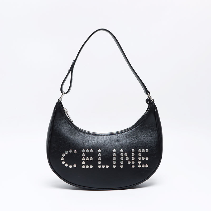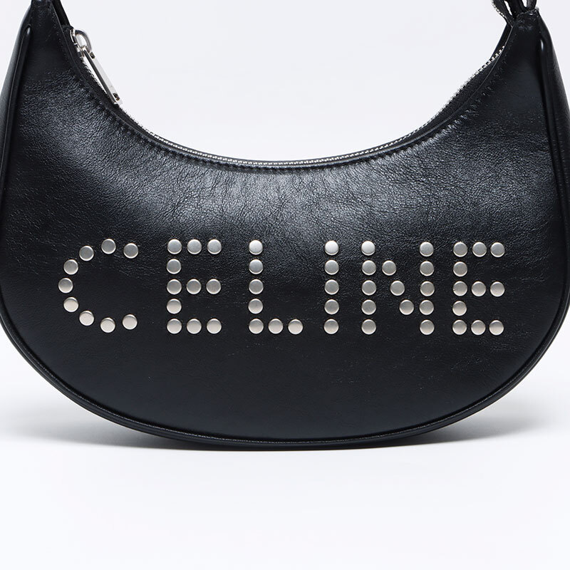 セリーヌ CELINE ショルダーバッグ スタッズ ロゴ ホーボー ブラック