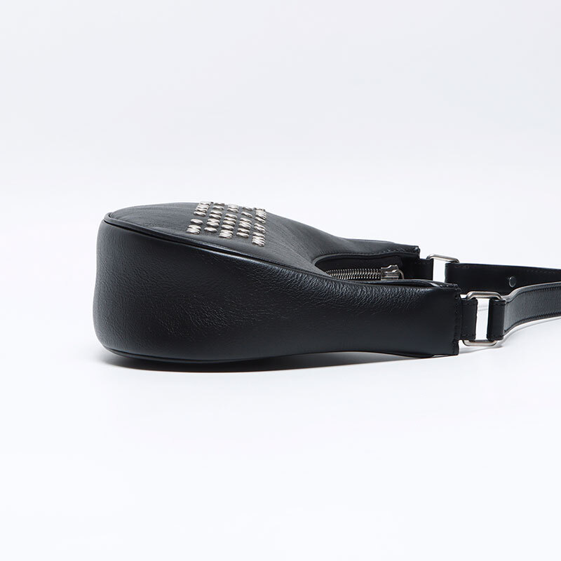 極美品 CELINE スタッズ ロゴ ホーボー ショルダーバッグ ブラック