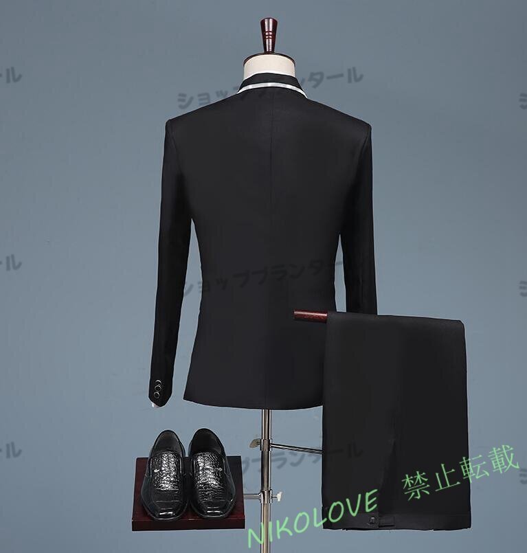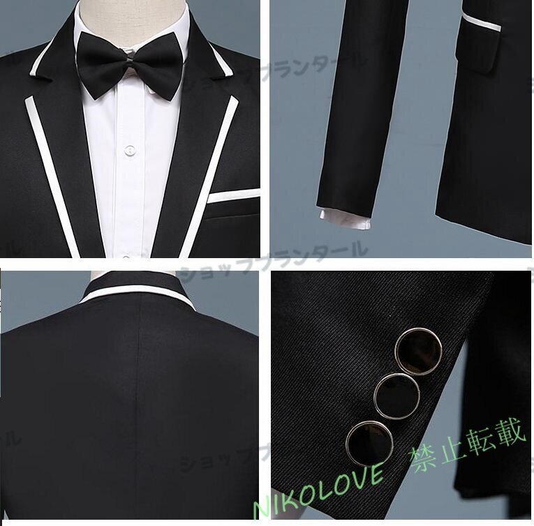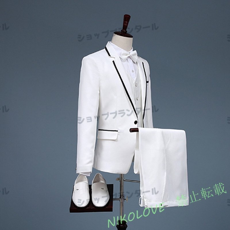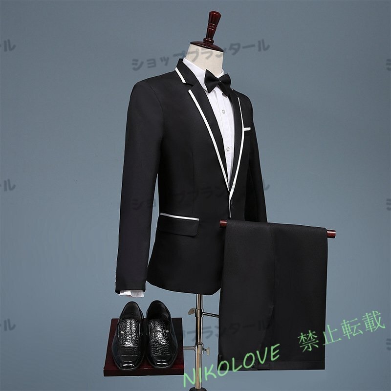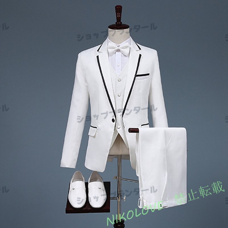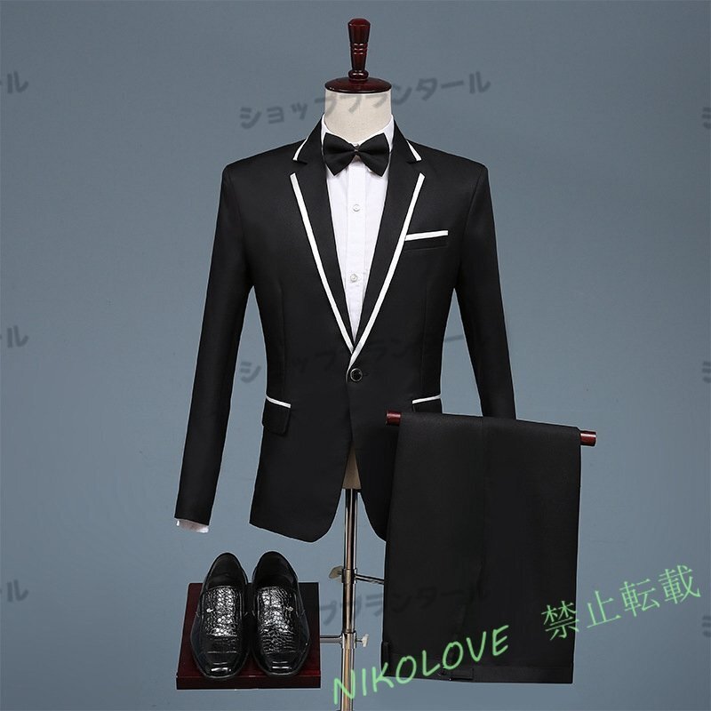 2点セット ホワイト(白)+黒ライン 2色の展開スーツ メンズ スーツセット タキシード上着 ズボン 演奏会舞台衣装
