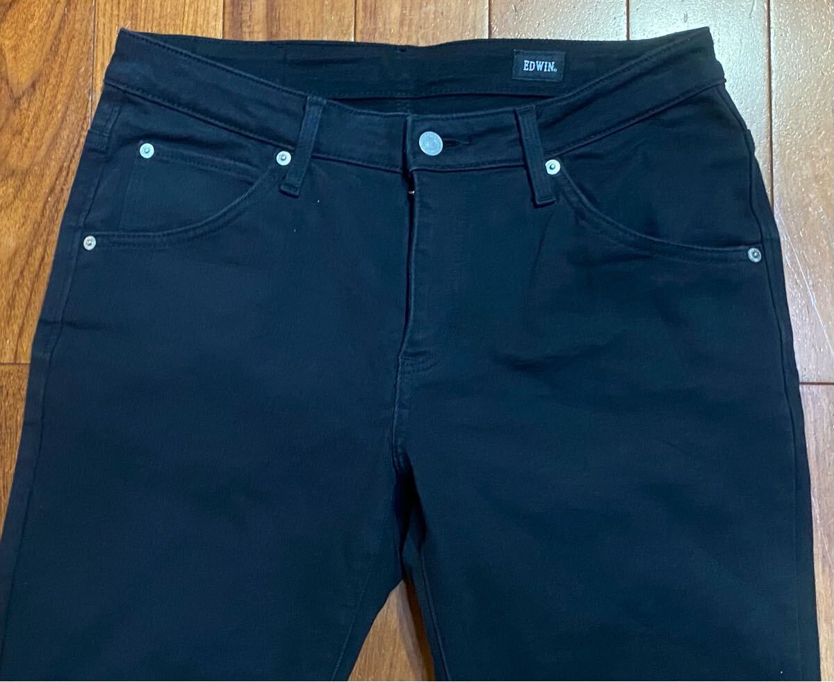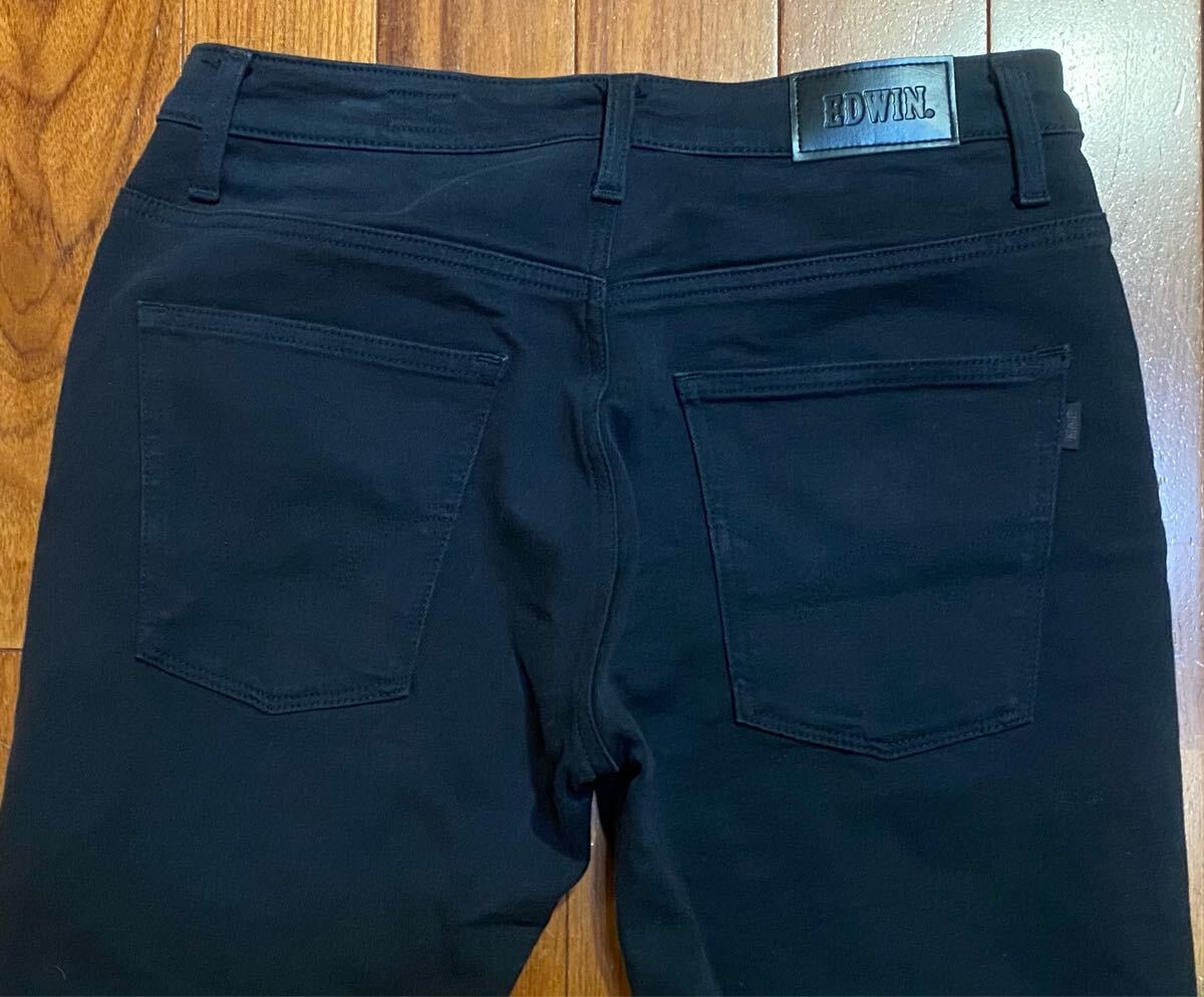 エドウィンのストレッチ暖デニムパンツ、No.GEW036です。色はブラックです。USEDですが状態は良いです(10段階中8程度)。生地はストレッチ入りで綿69%、ポリエステル19%、レーヨン10%、ポリウレタン2%です。ジッパーフライです。正規品です((株)エドウイン、ベトナム製)。サイズはW30でウエストは重ねずに平置きで約80cm、ヒップ約106cm、股上約24cm、股下約75cm、股下15cmのふともも部分約50cm、裾まわり約37cm、重量約640gです。発送はゆうパケットポストになります。