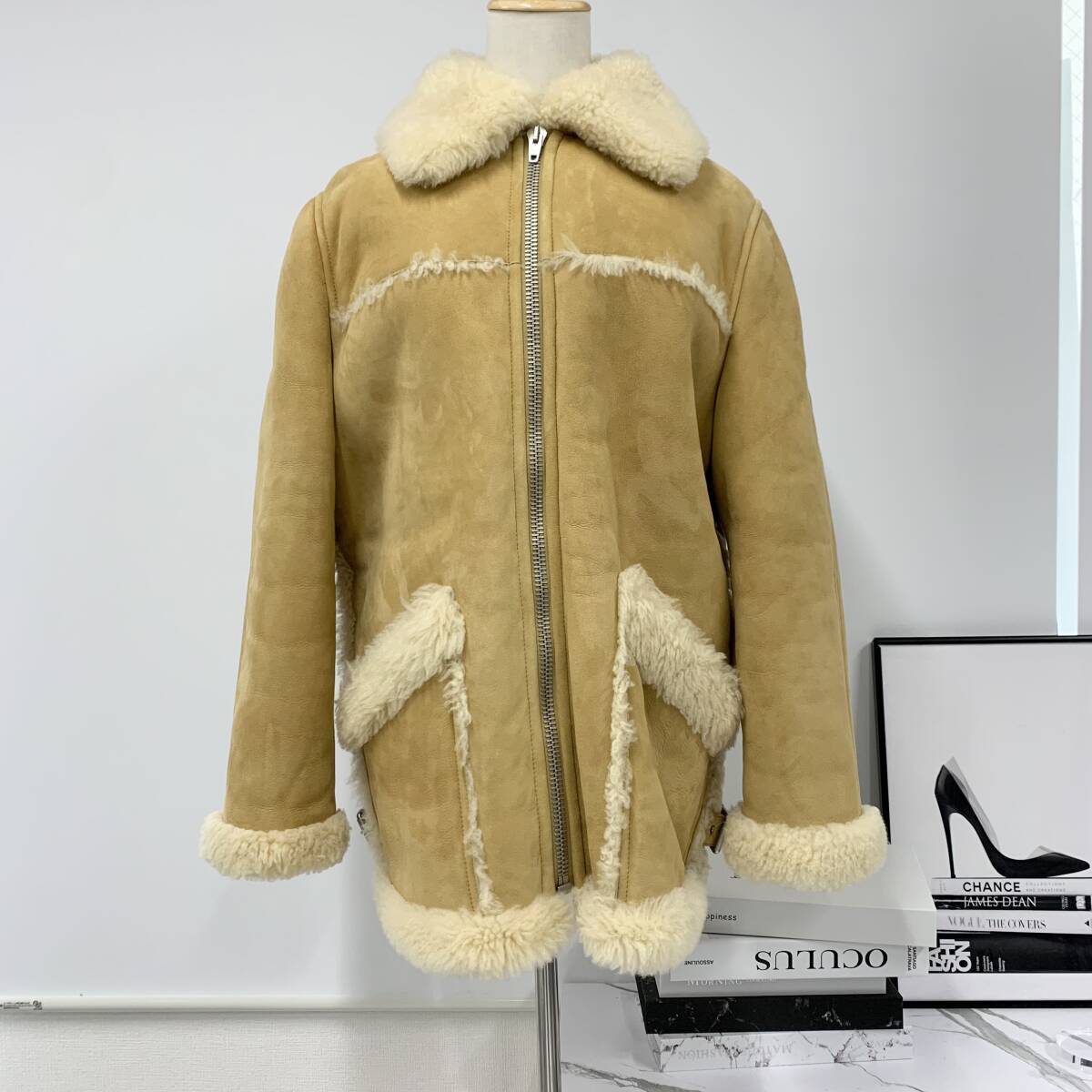 M11851 セリーヌ ジップアップムートンジャケット コート ラムスキン アウター ベージュ