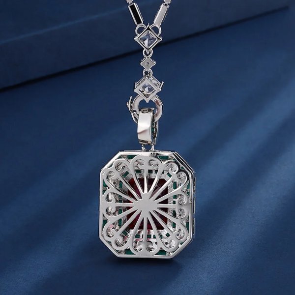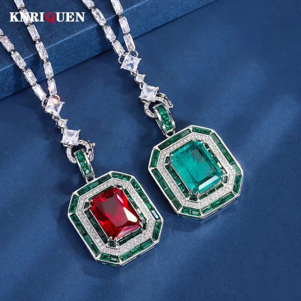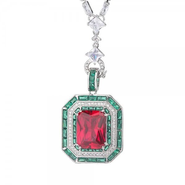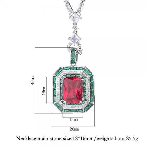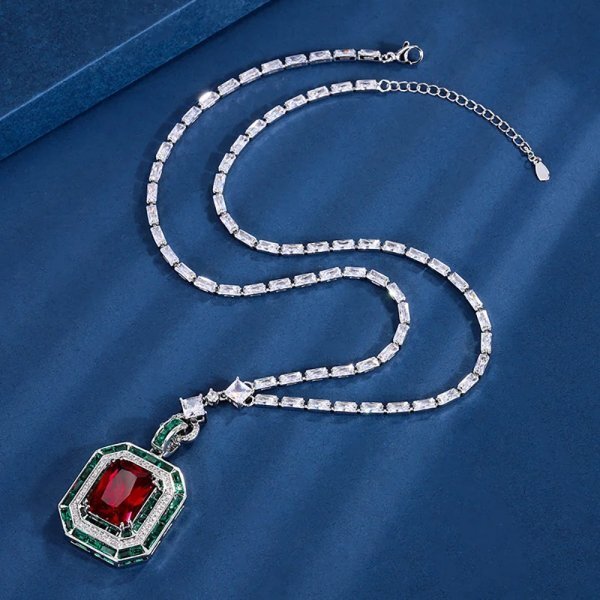 女性用ペンダント付きネックレス、ルビー、12x16mm、ラボダイヤモンド