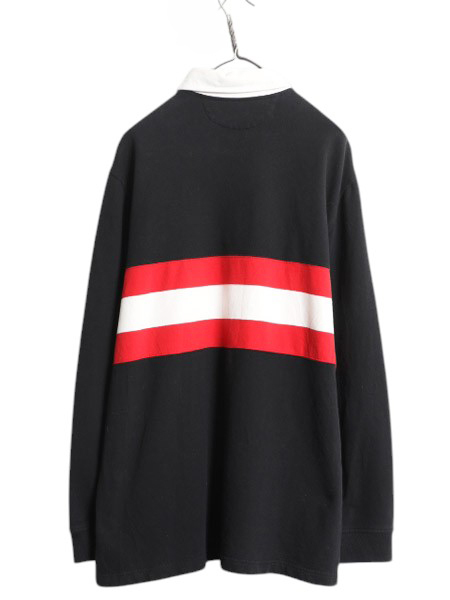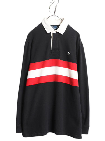 商品名 | 90s ポロ ラルフローレン ボーダー スウェット ラガーシャツ メンズ L 古着 長袖シャツ ラグビー ワンポイント 裏起毛 トレーナー ブラック |