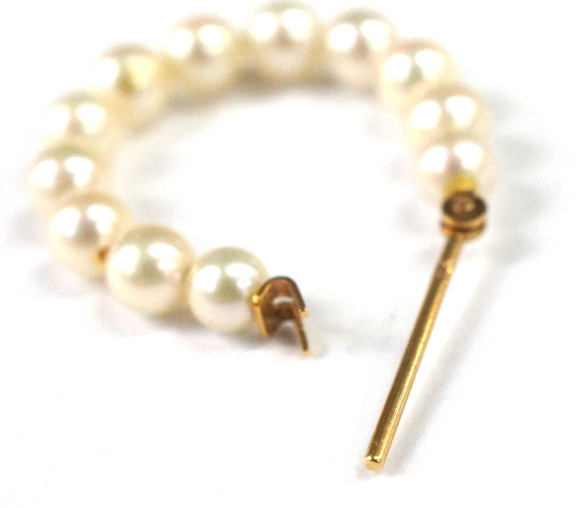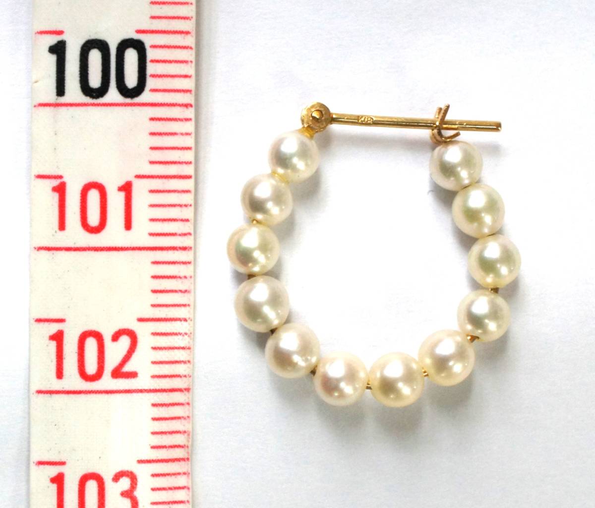 K18のフープピアスです。 12個のベビーパールが連なり、とても可愛いです。 ================ ●材質:K18 ●付属:ベビーパール ●重さ:約2.71g ●パールの直径:約4mm ●ポストの長さ:約12mm ●フープの直径:約20mm ★鑑定書/鑑別書等はございません。 ================ ※K18部分に小傷が僅かにありますが目立つものではなく、全体的に綺麗な状態です。 me-ohi | |||