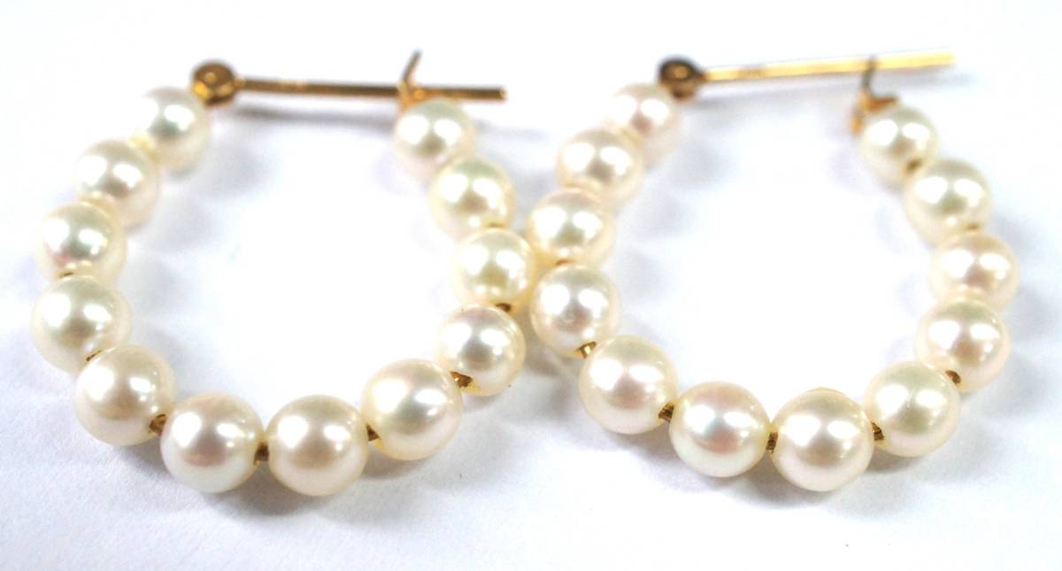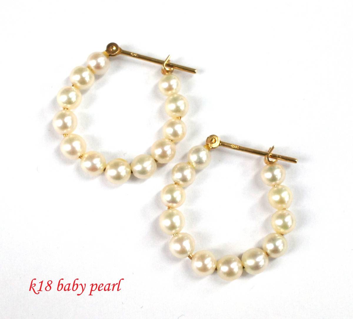 K18 ベビーパール 真珠 フープピアス リングピアス 4×20mm 【両耳】【送料無料】 | |||