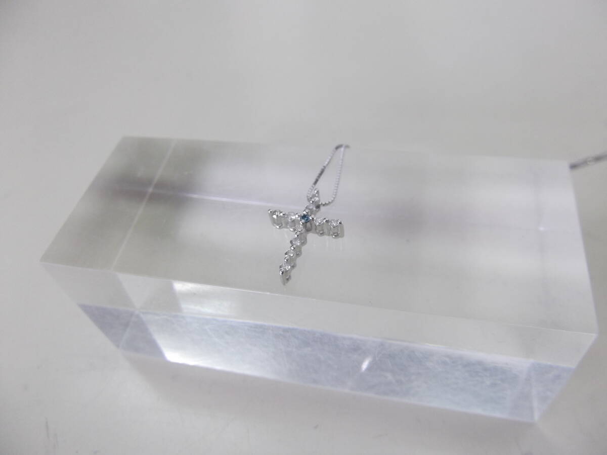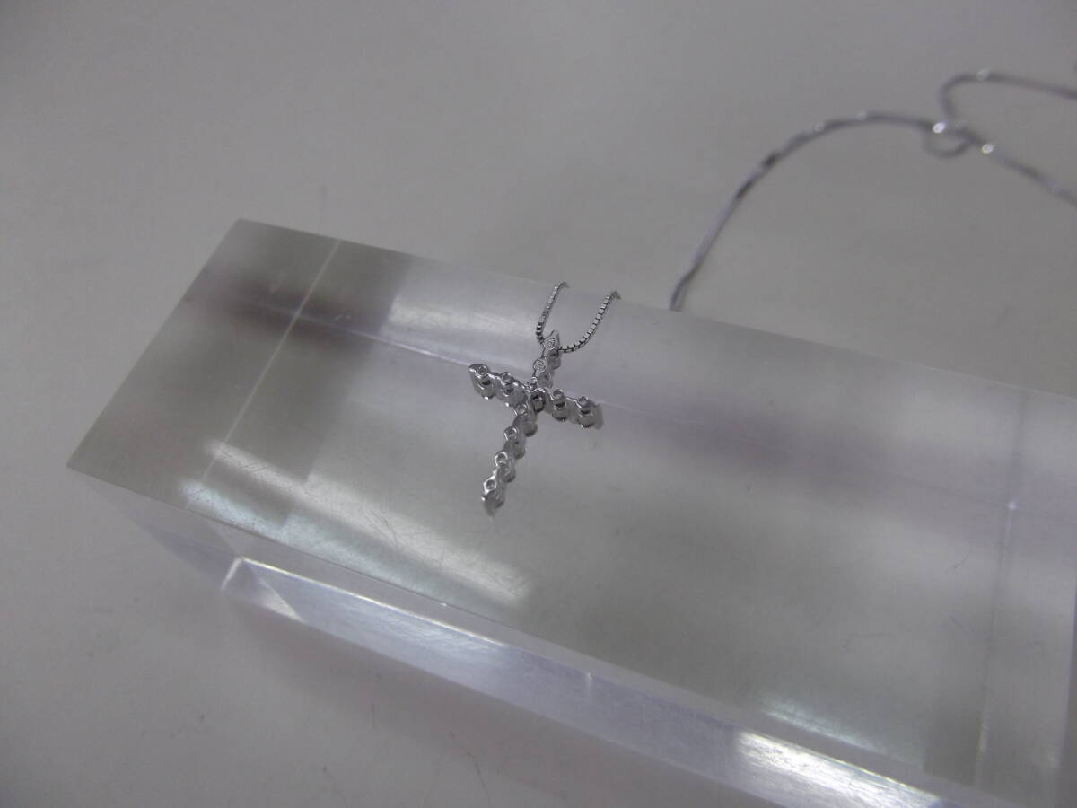 K18WG クロス 十字架 ダイヤ ネックレス 未使用展示品