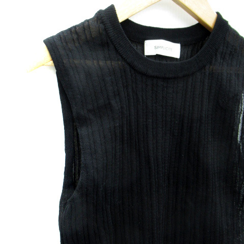 シンプリシテェ SIMPLICITE サマーニット カットソー ノースリーブ シアー 黒 ブラック /SM4 レディース