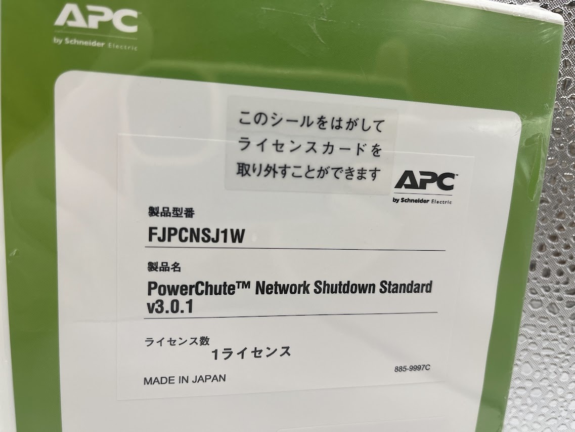 | ご覧いただき誠にありがとうございます。 ●PowerChute Network Shutdown Standard V3.0.1 APC 写真に写っているものが全てです。他の付属品はありません。 新品になりますので、パッケージは、擦れ傷、シミ付着 壊れなどあります。 使用方法、設定方法などのサポートは出来かねますのでご了承願います。 ※画像で判断できる方のご入札をお待ちしております。 | |||
