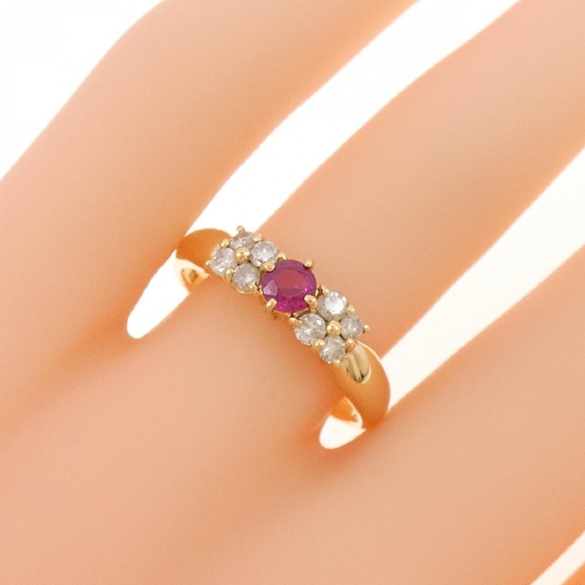 落ち着いた濃いレッドのルビー。細かい輝きを放つダイヤモンドがサイドを飾ります。