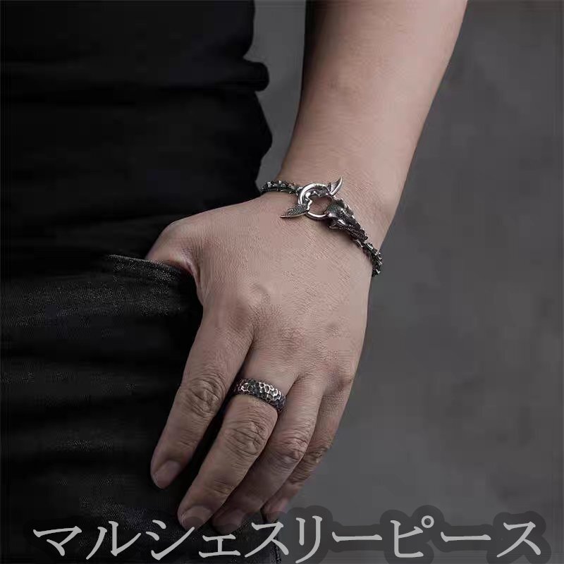 シルバー925 ハンドメイド ヴィンテージドラゴンボーン ブレスレット 邪悪な飛龍デザイン メンズ