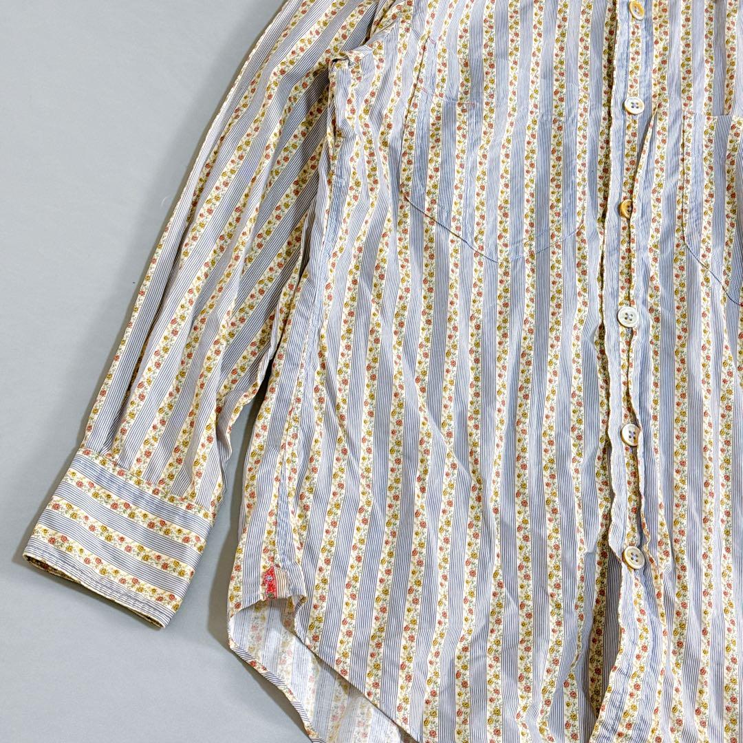 花柄ストライプ 長袖シャツ 総柄